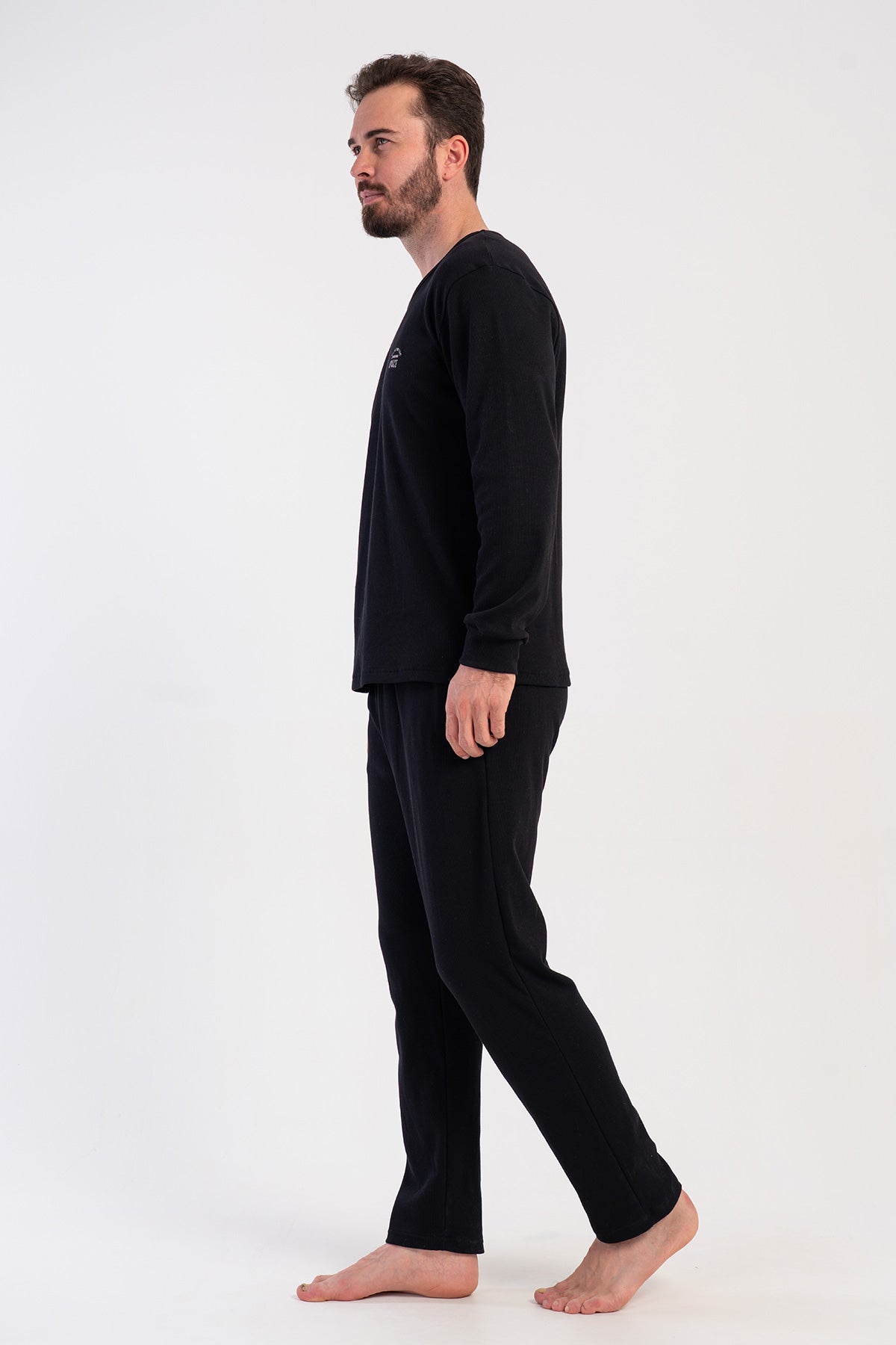 CEPLI ERKEK KASKORSE O YAKA UZUN KOL KOLUCU MANSETLI PIJAMA TAKIM