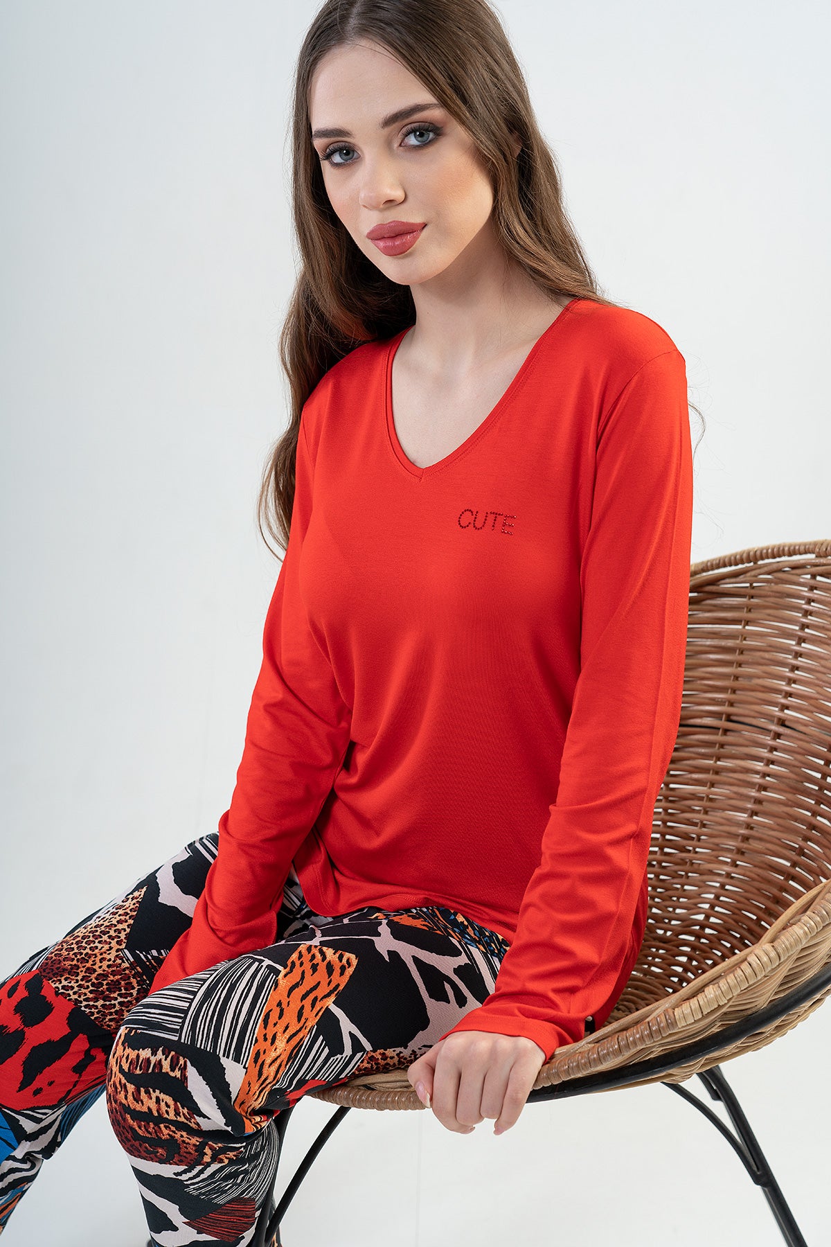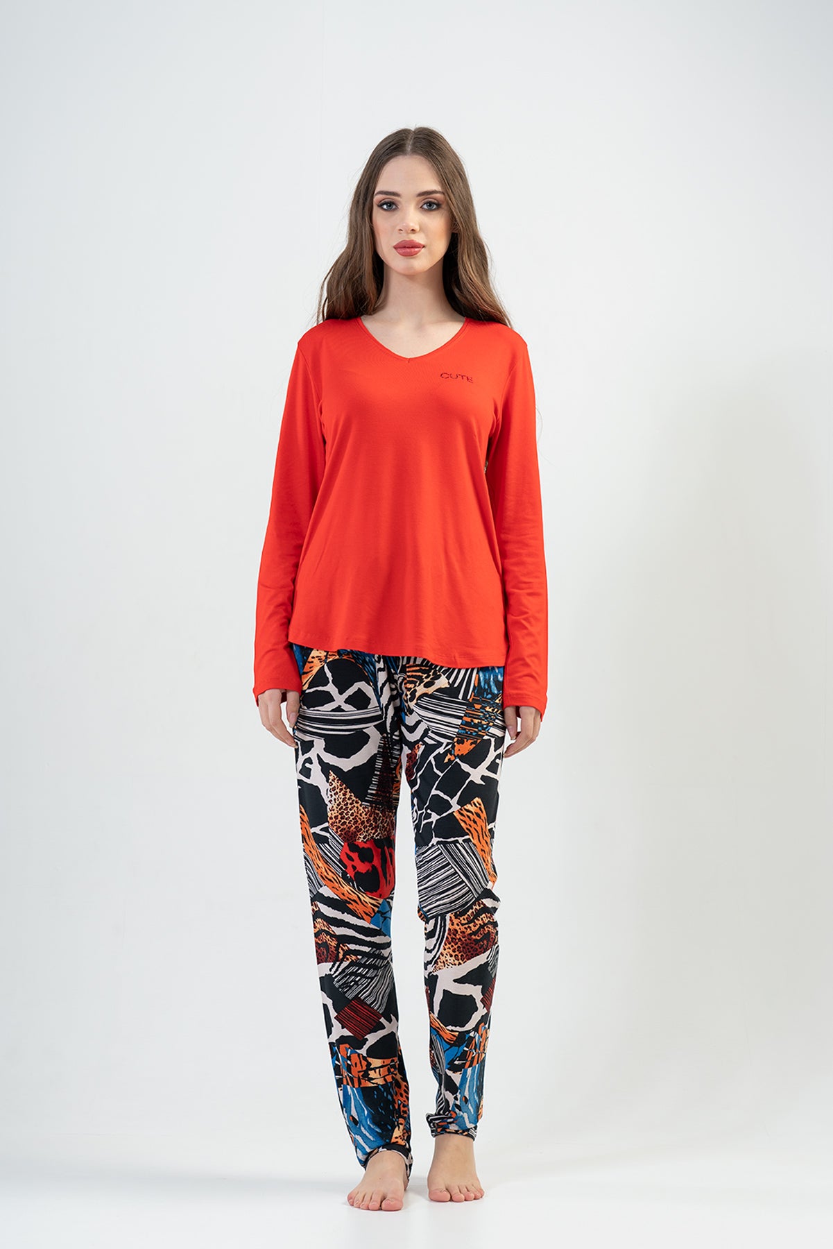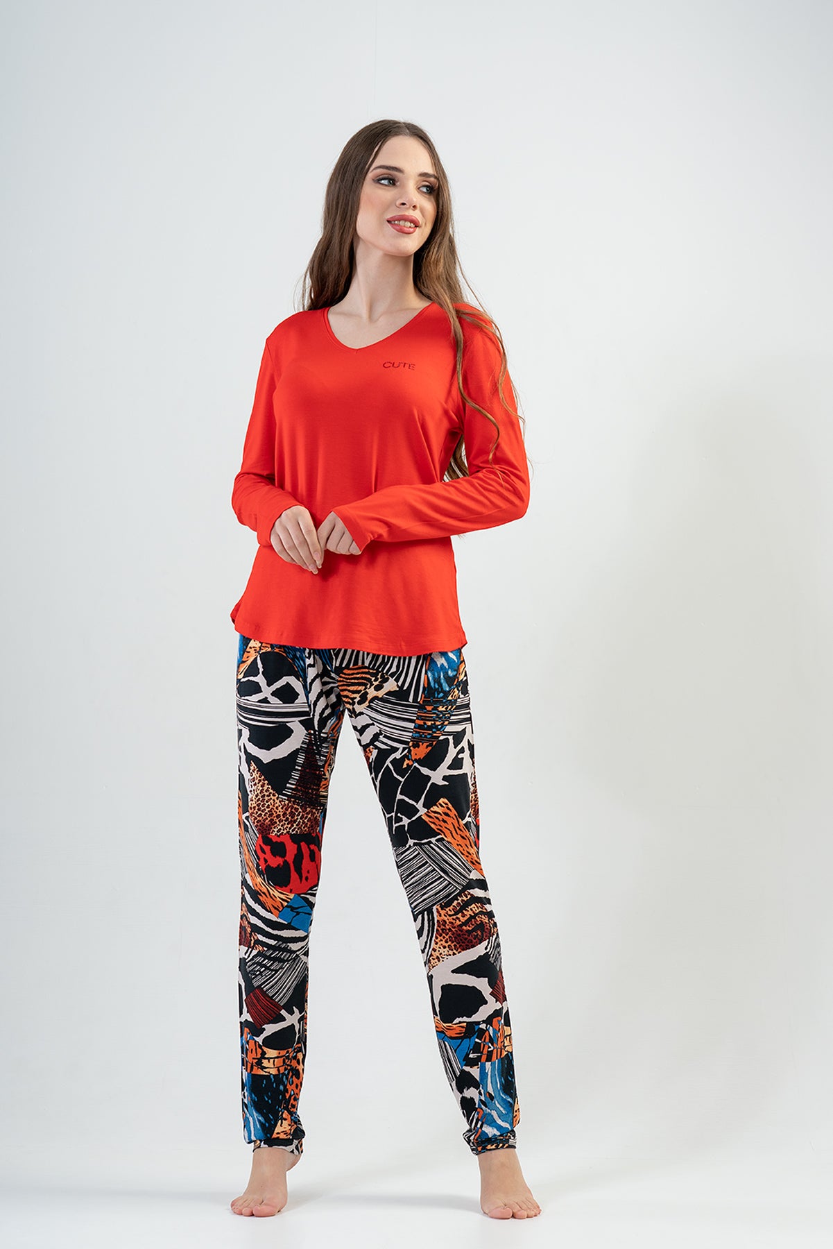 BAYAN LYC WORTEKS V YAKA UZUN KOL ETEGI OVAL CEPLI PIJAMA TAKIM