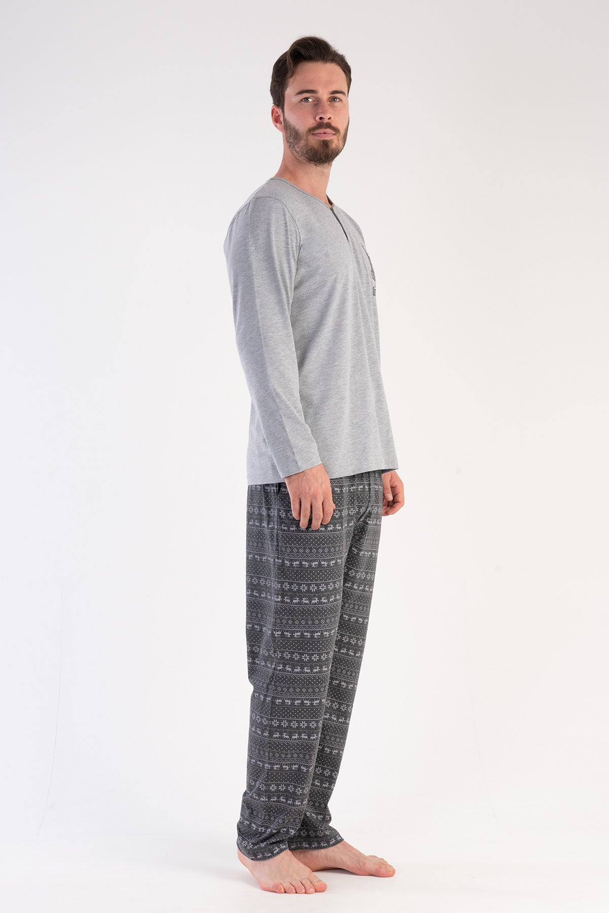• ERKEK SUPREM XXL PATLI UZUN KOL PIJAMA TAKIM 304093 - Vienetta1.GrupGRAY MELANGE