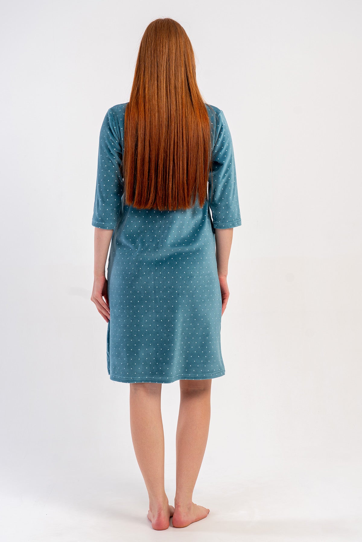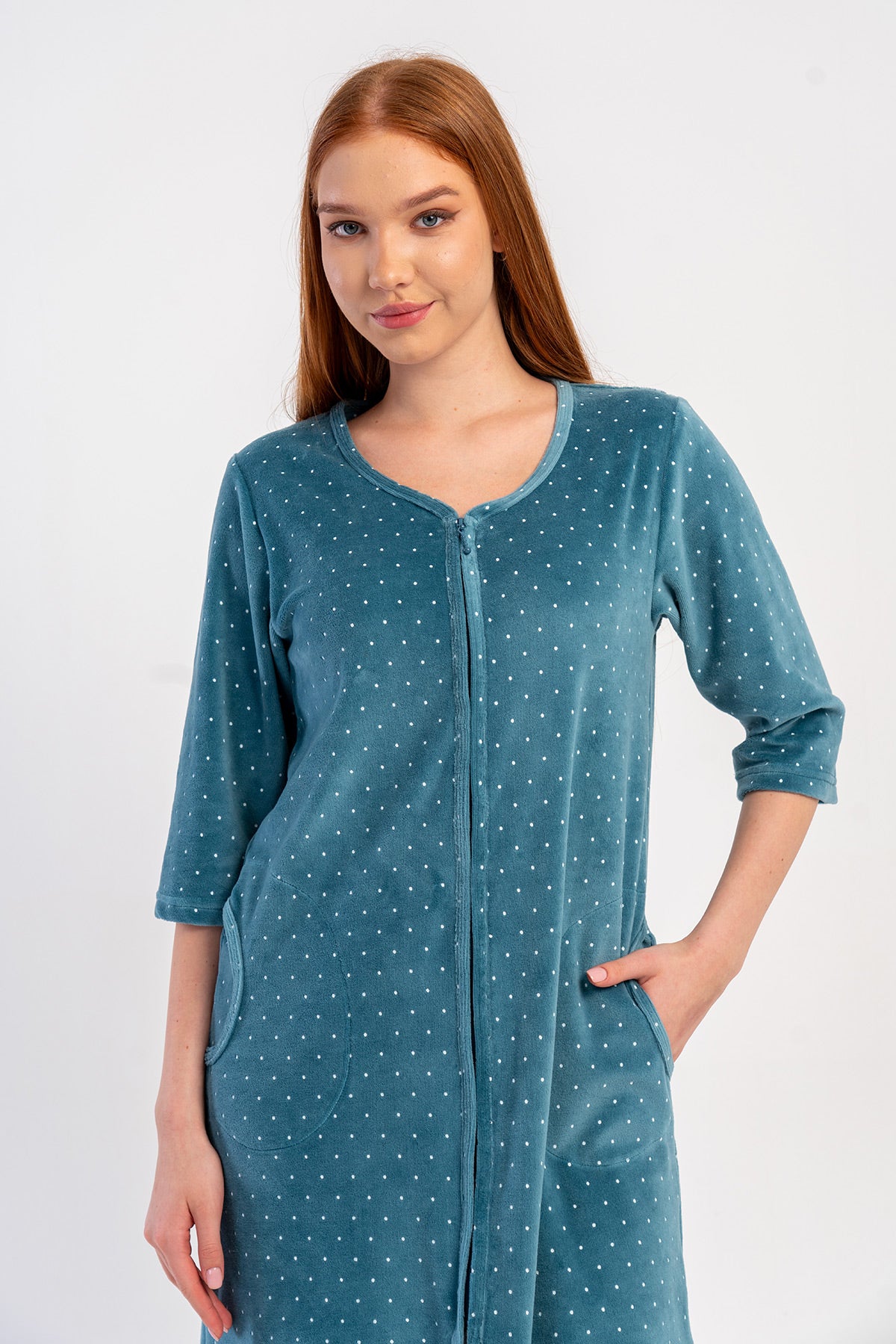 KADIN PAMUK KADIFE 3/4 KOL CEPLI FERMUARLI EV ELBİSESİ
