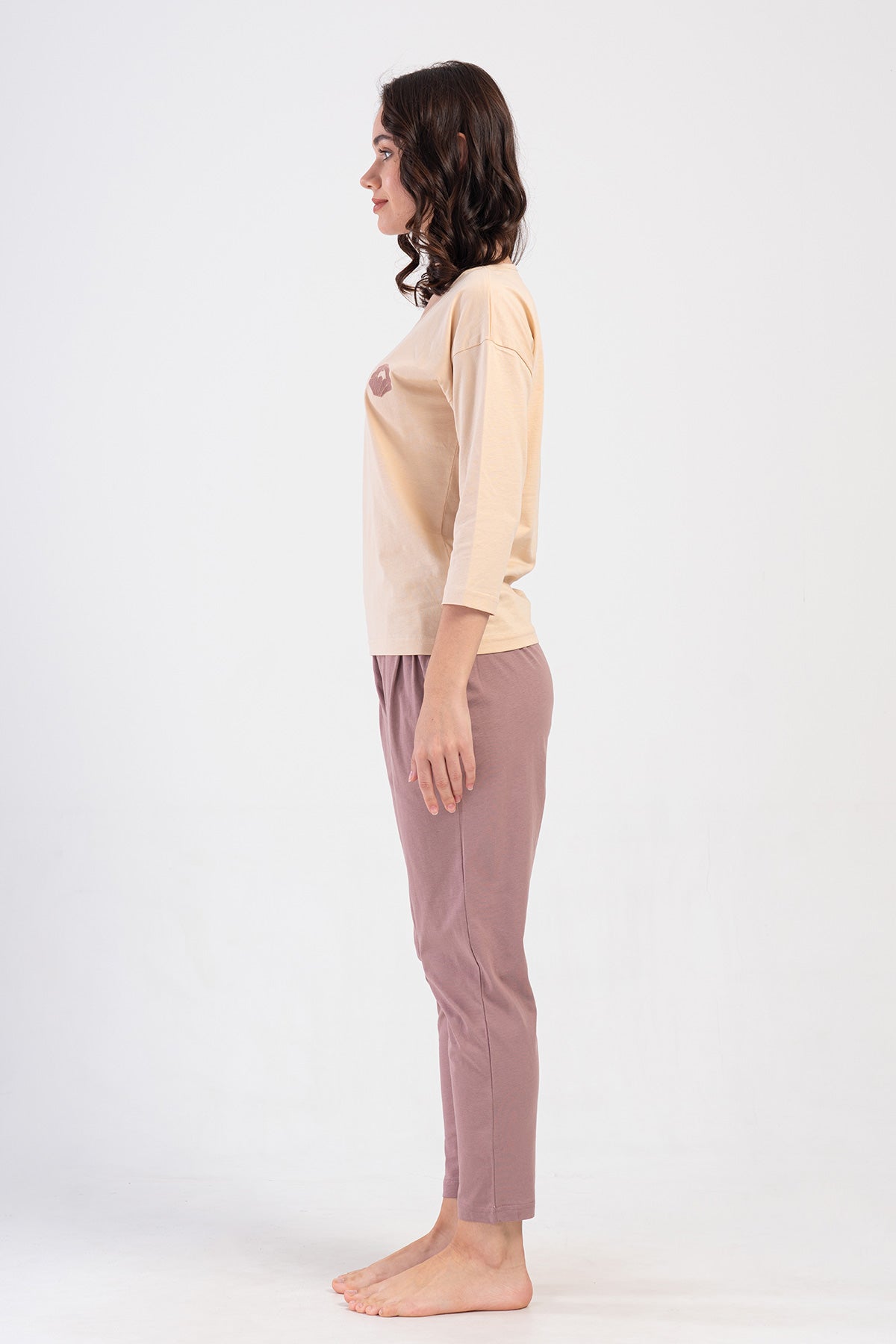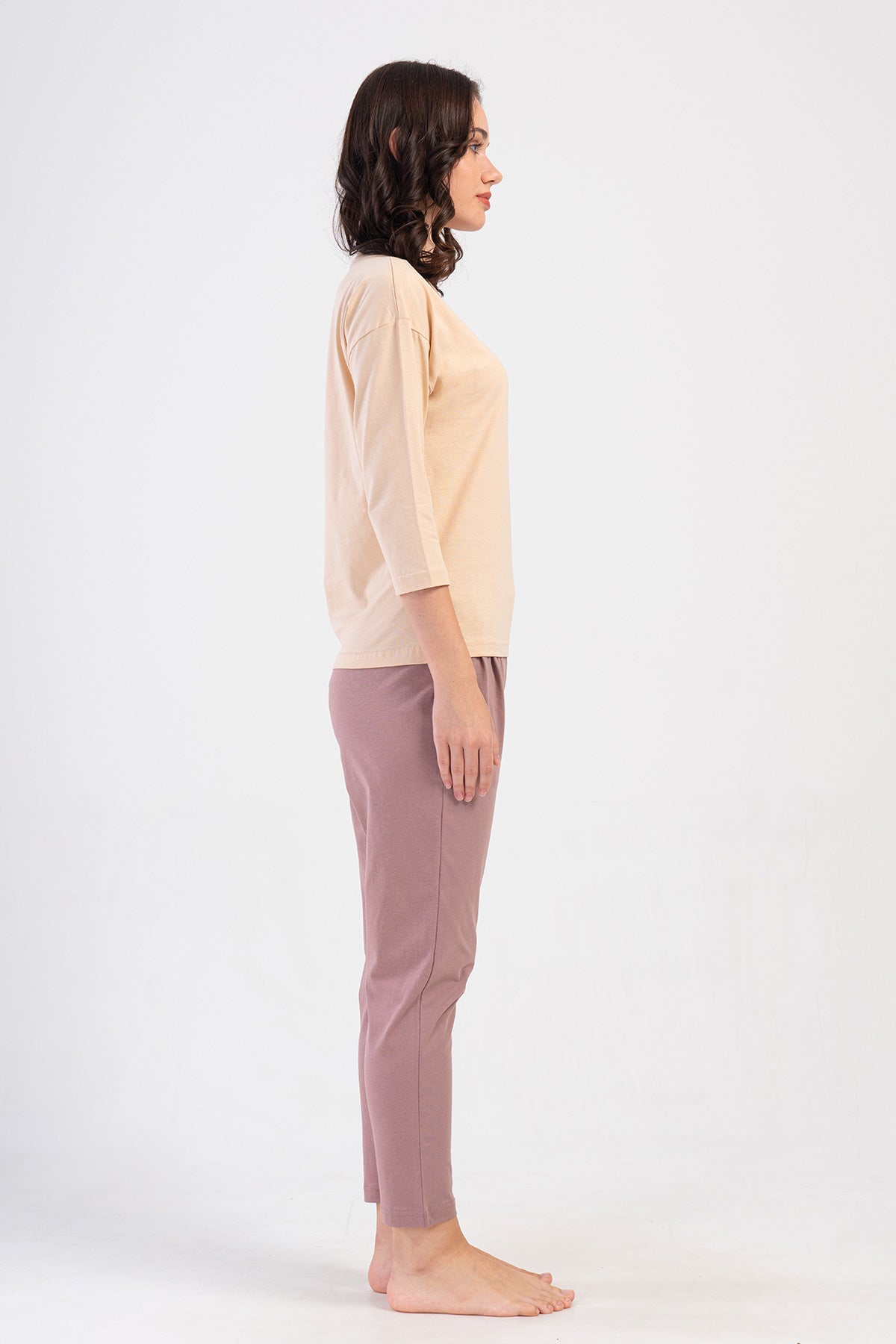 KADIN P.SUPREM O YAKA DUSUK OMUZLU 3/4KOL PILELI CEPLI 7/8 BOY PIJAMA TAKIM