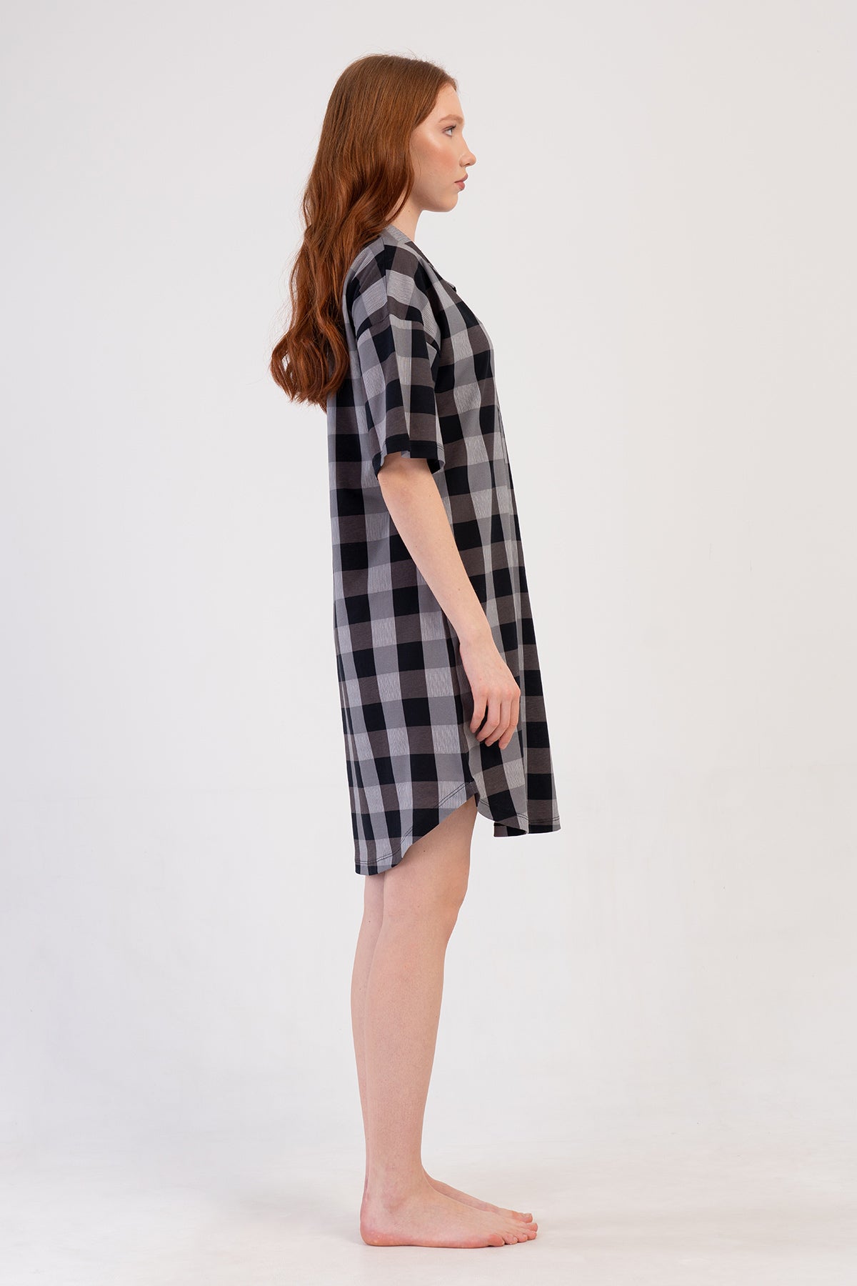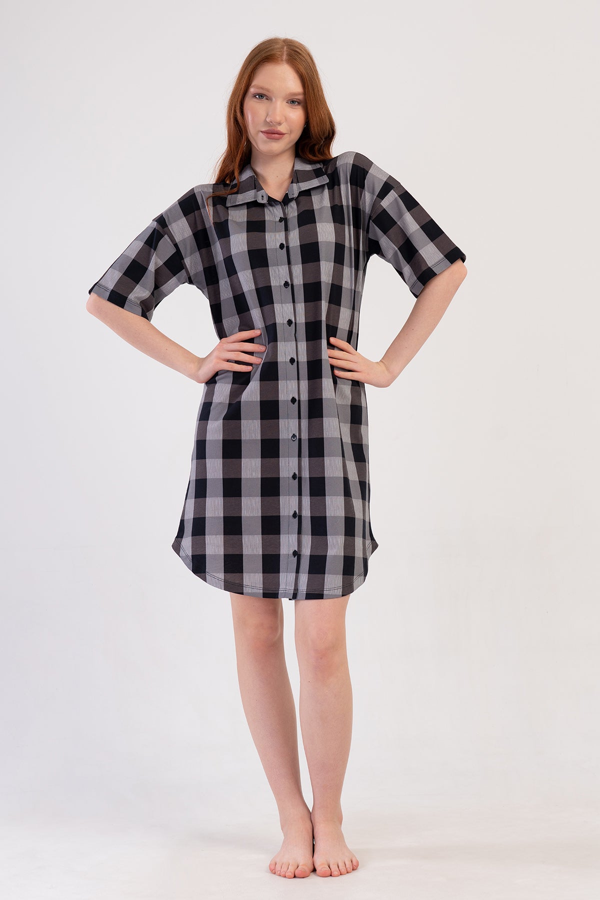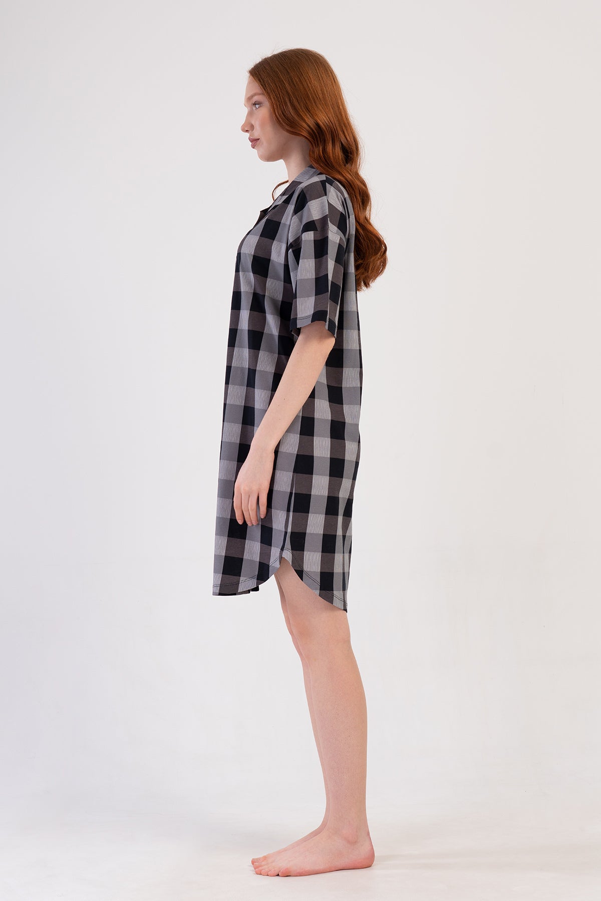 KADIN P.SUPREM DUSUK OMUZLU TAMAMI DUGMELI KISA KOL ETEGI OVAL GOMLEK TUNIK