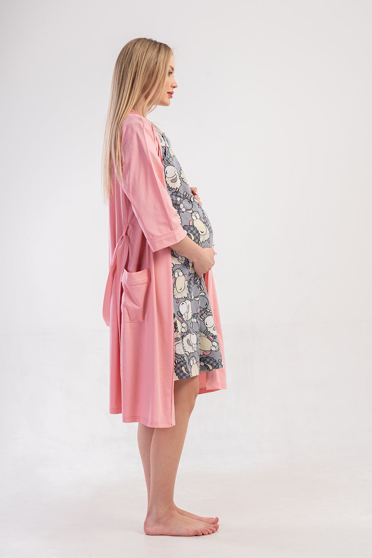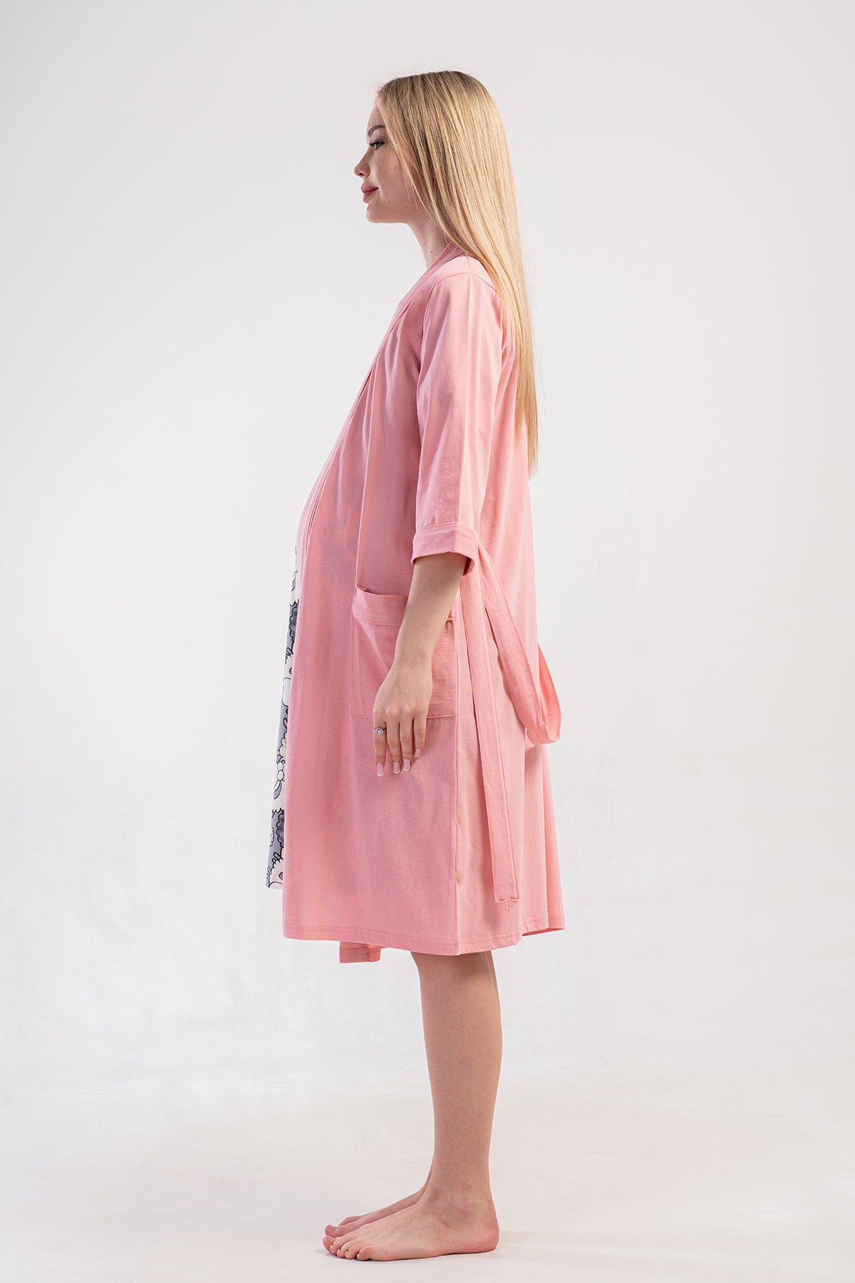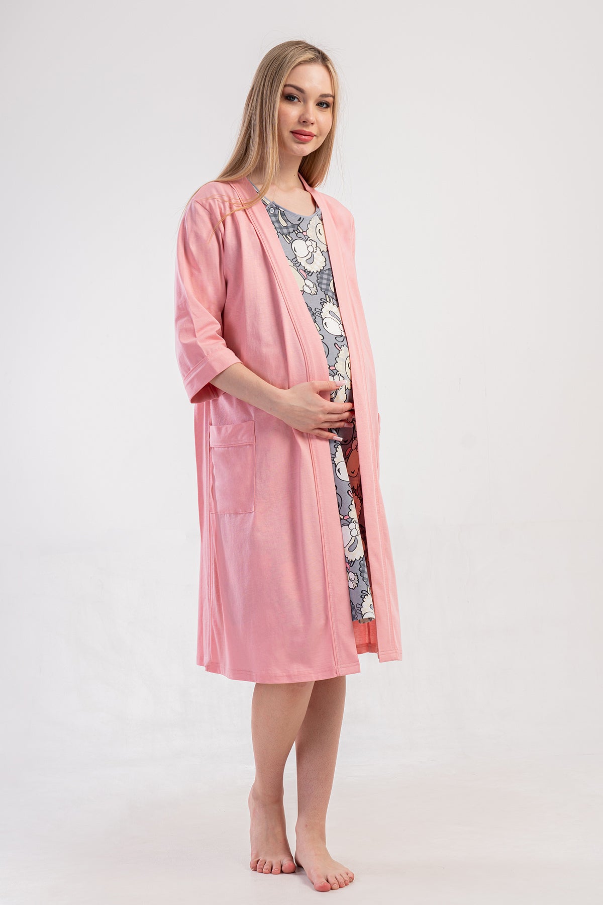 KADIN P.SUPREM CIFT PATLI KISA KOL HAMILE TUNIK+3/4 KOL CEPLI SABAHLIK TAKIM