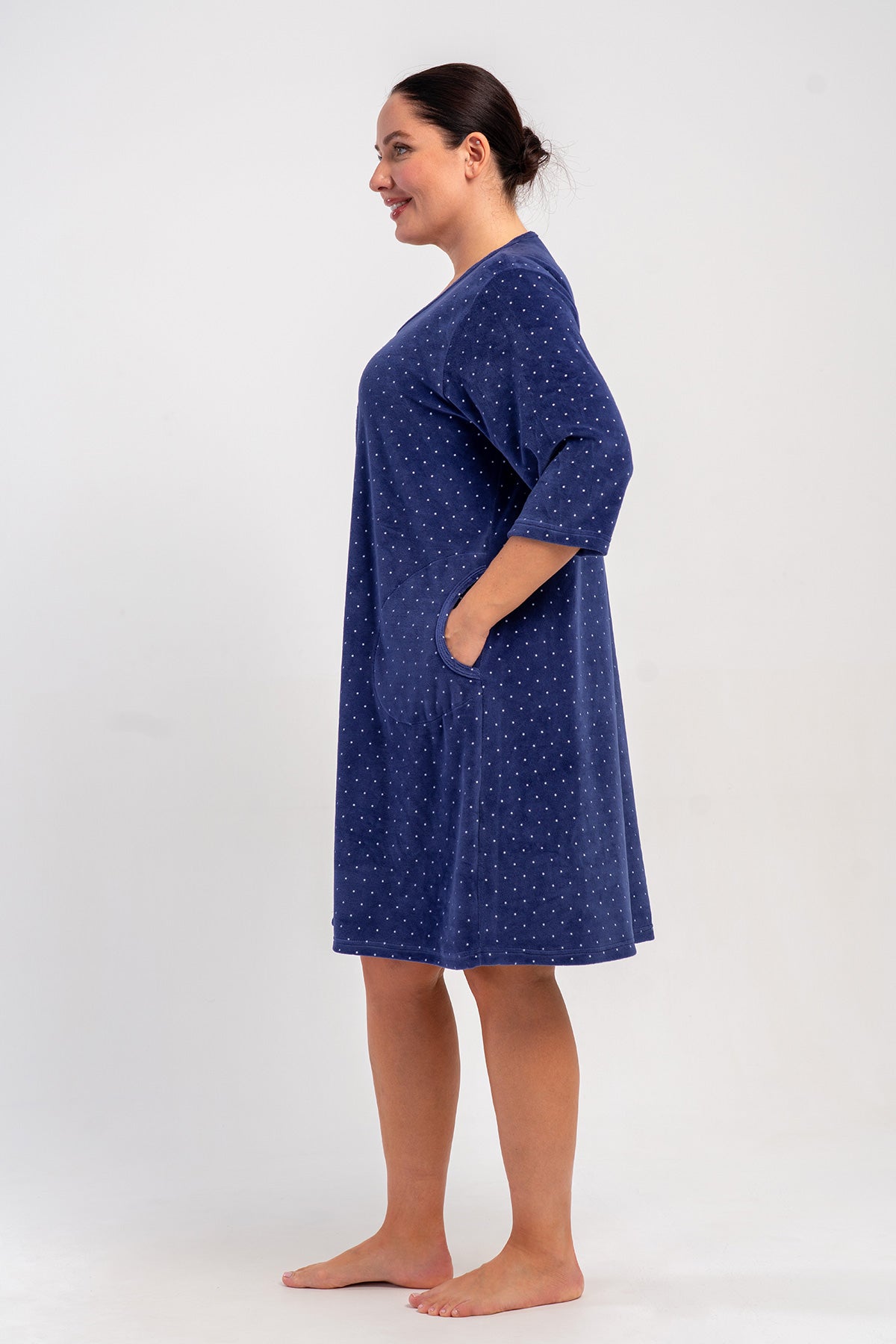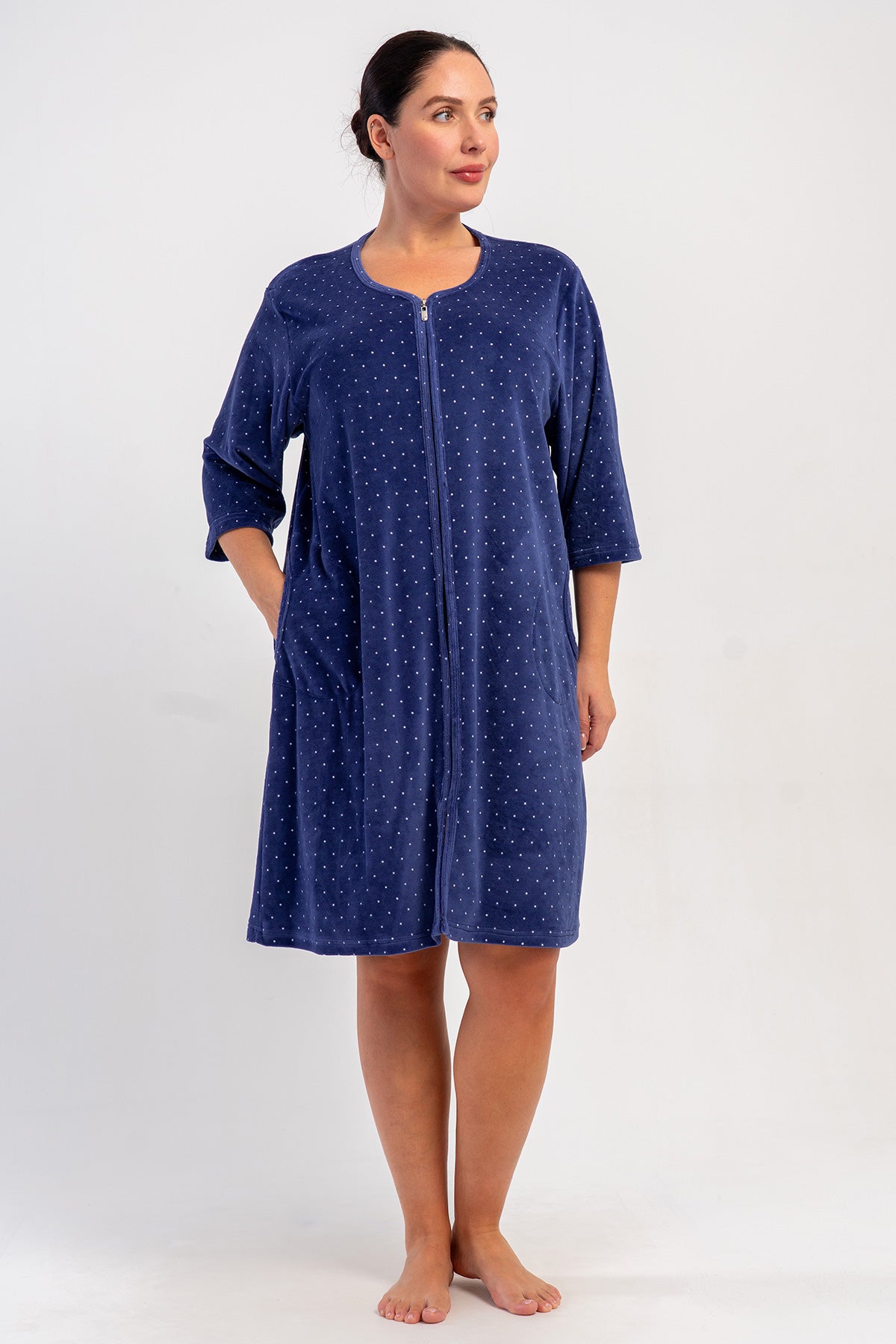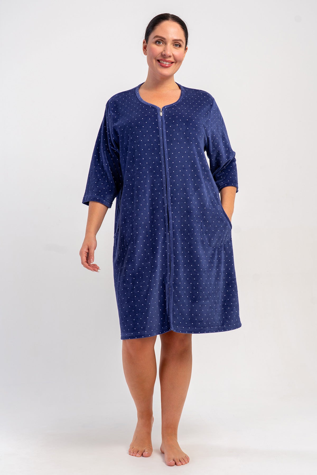 KADIN PAMUK KADIFE XXL 3/4 KOL CEPLI FERMUARLI EV ELBISESI