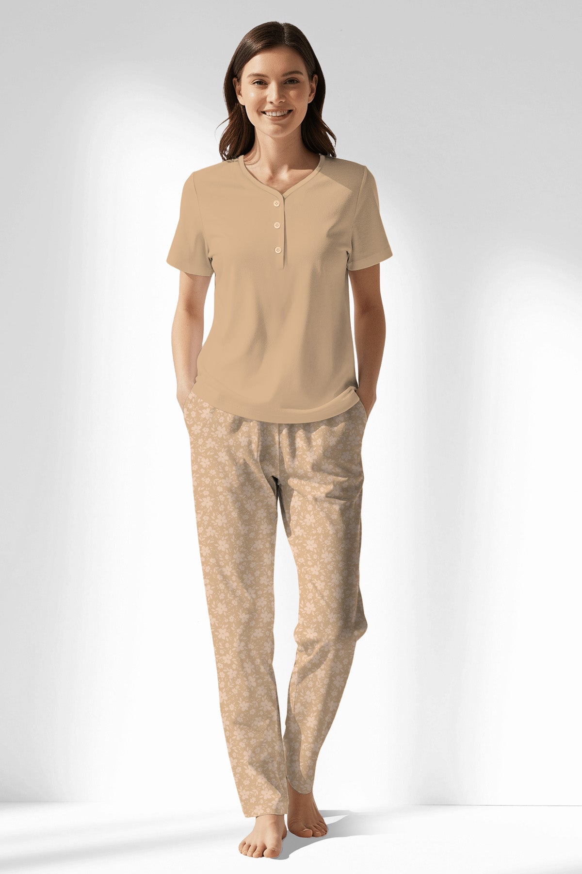 Woman Polyviscon SoftEcho Drop Collar Short Sleeve Pyjama Set