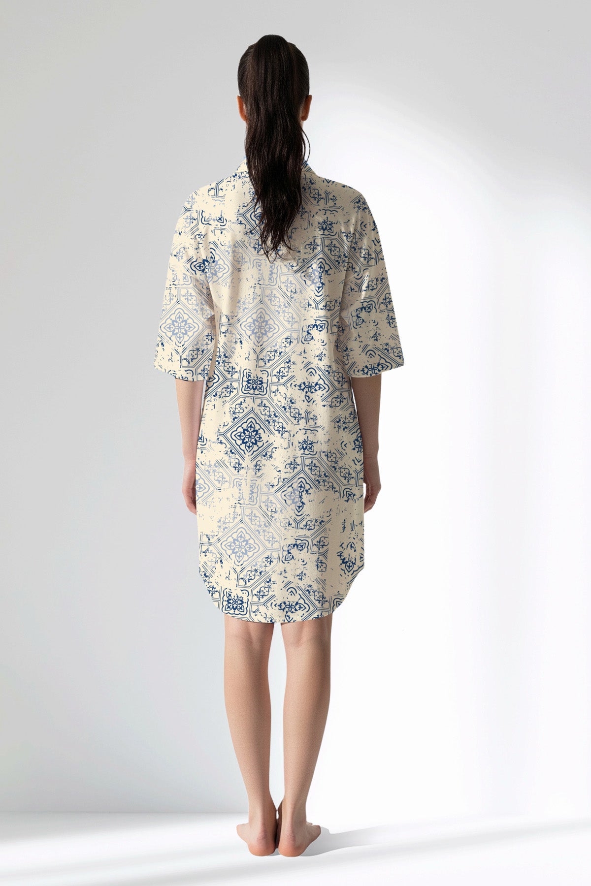 Woman Polyviscon Bluetile Buttoned Shirt Tunic