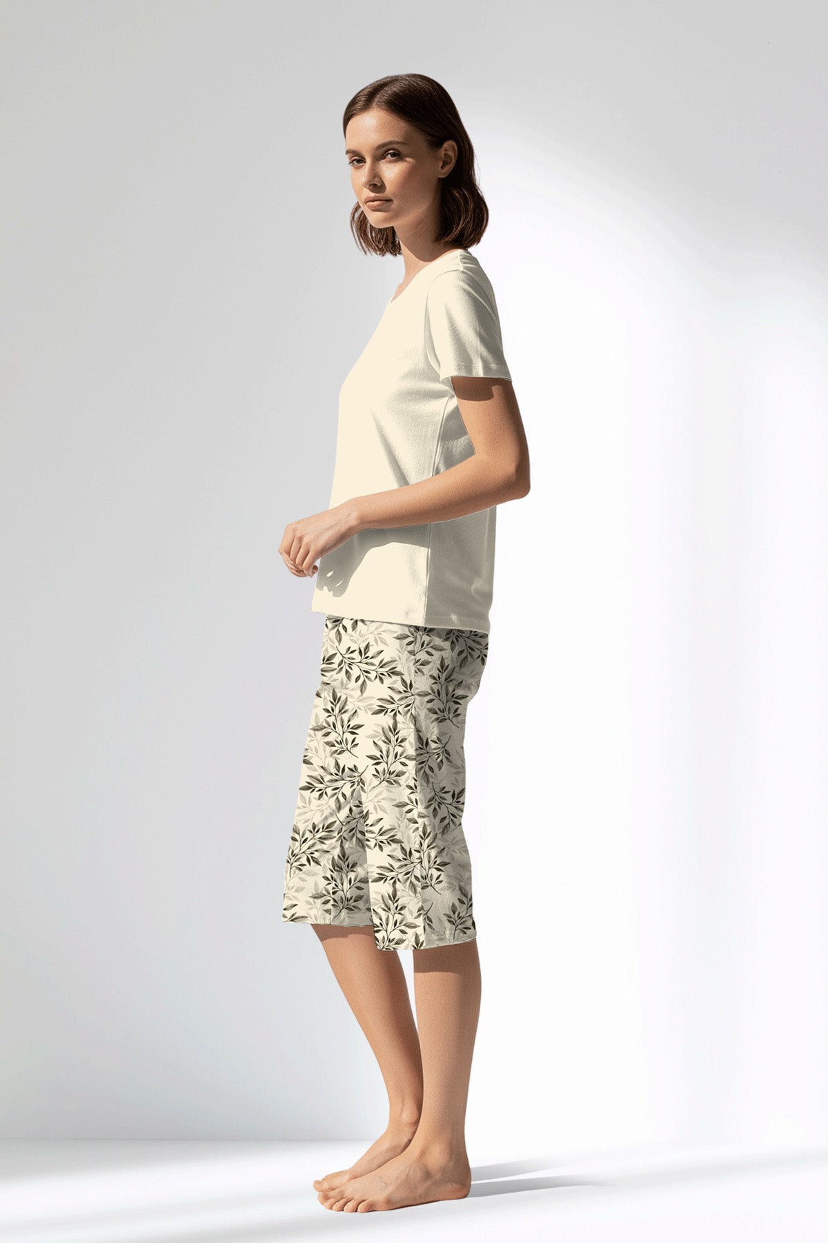 Woman Polyviscon DuskFlora Short Sleeve Capri Set