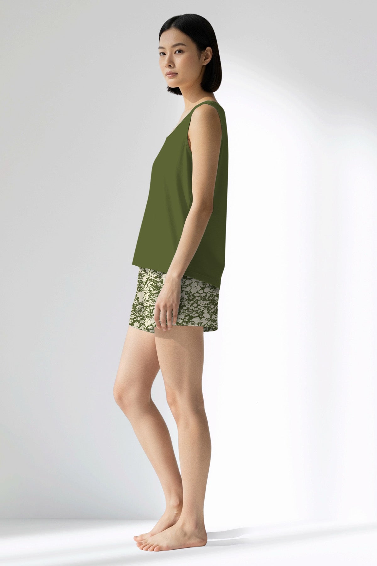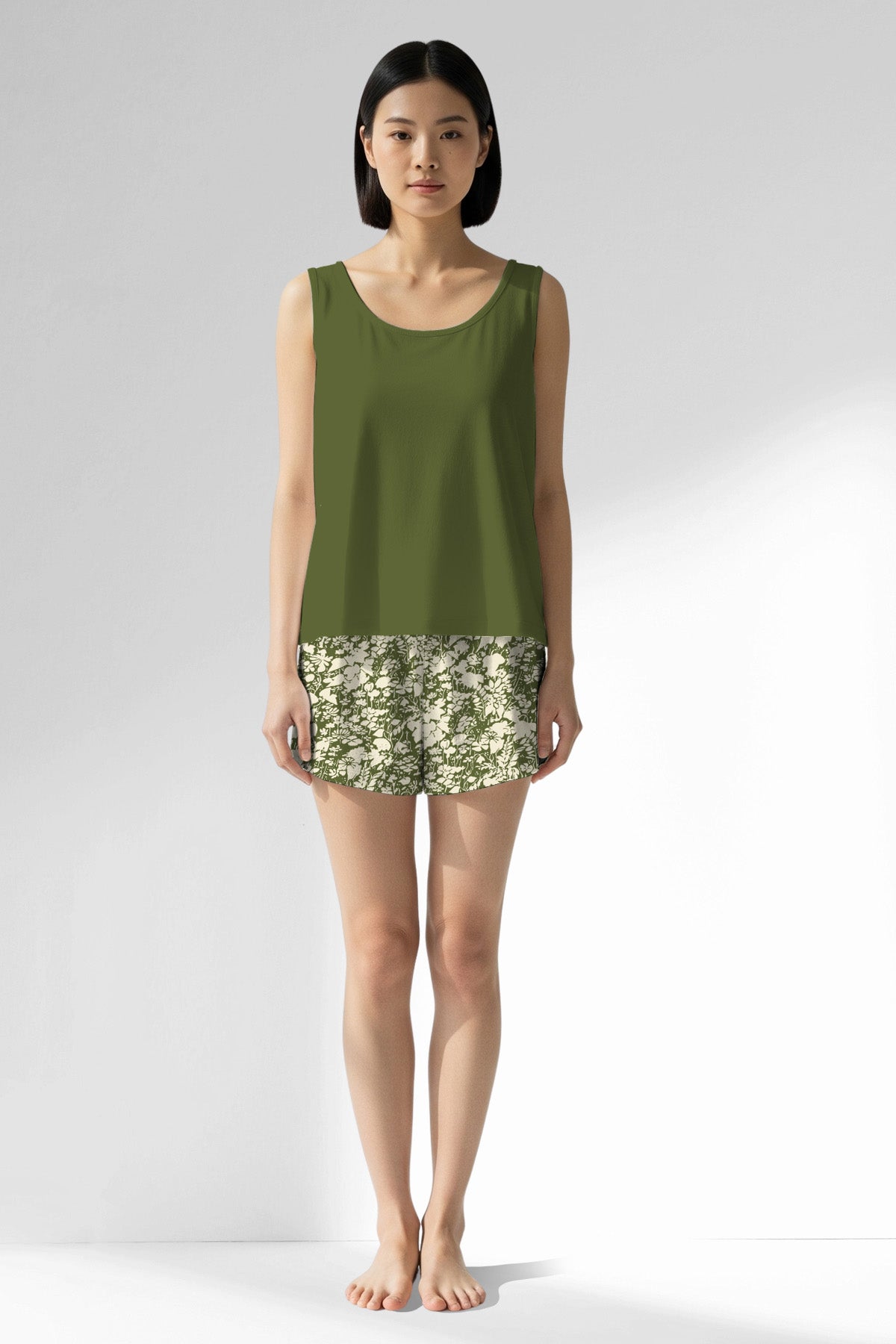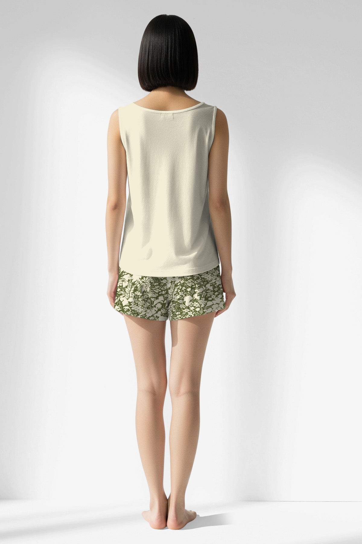Woman Polyviscon GreenHalo Thick Strap Sleeveless Short Set