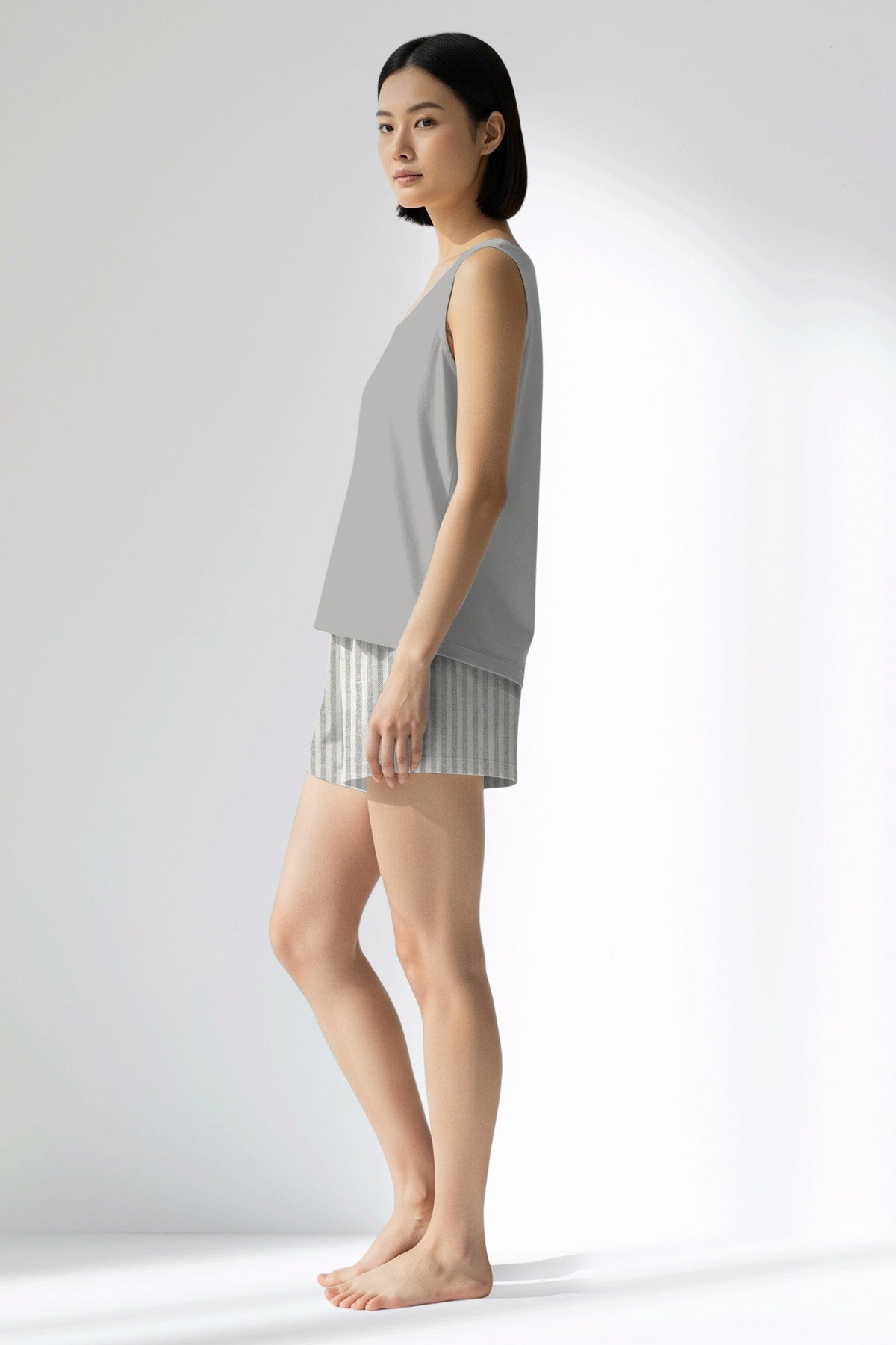 • Woman Polyviscon InkWave Thick Strap Short Set - METRAJ GRI - Image 3