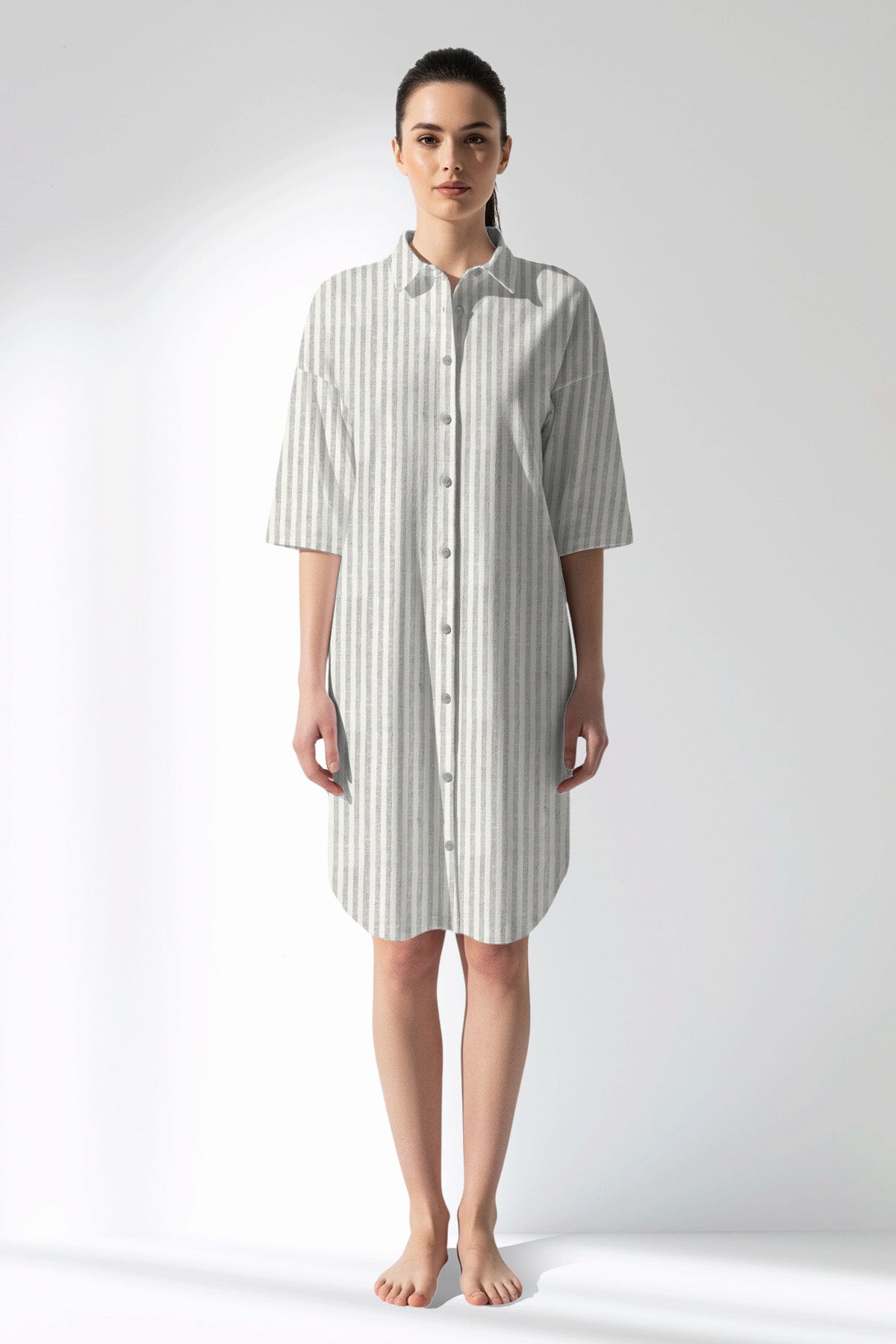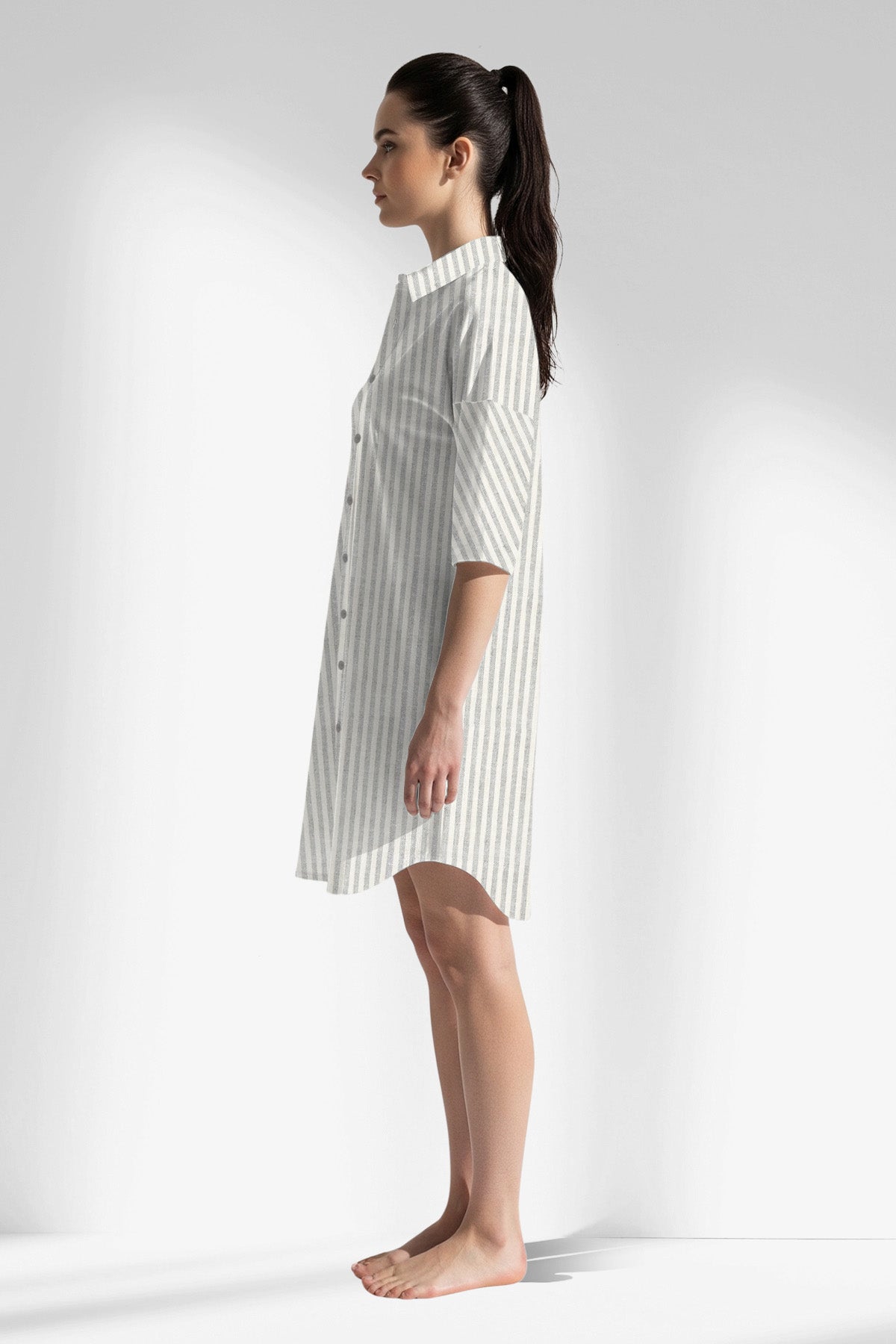 Woman Polyviscon InkWave Buttoned Shirt Tunic