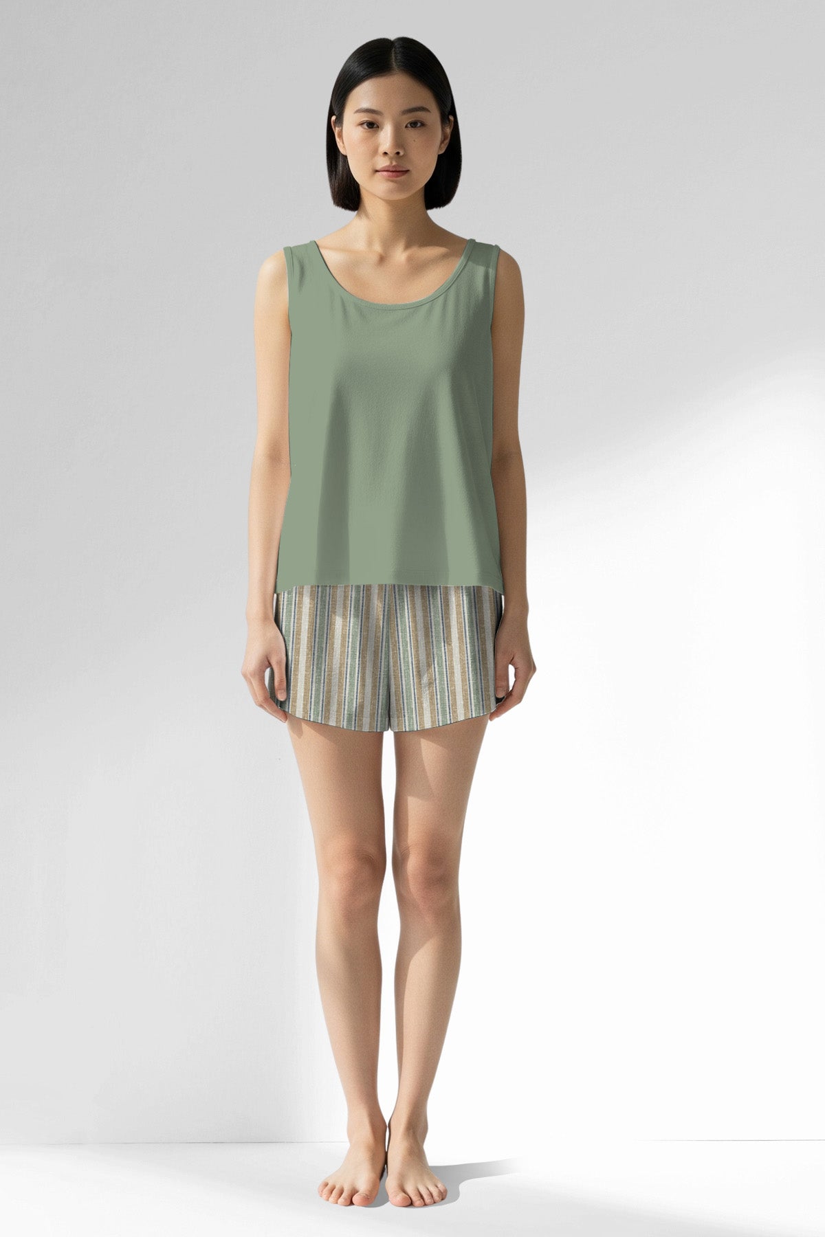 Woman Polyviscon LineFlow Thick Strap Sleeveless Short Set