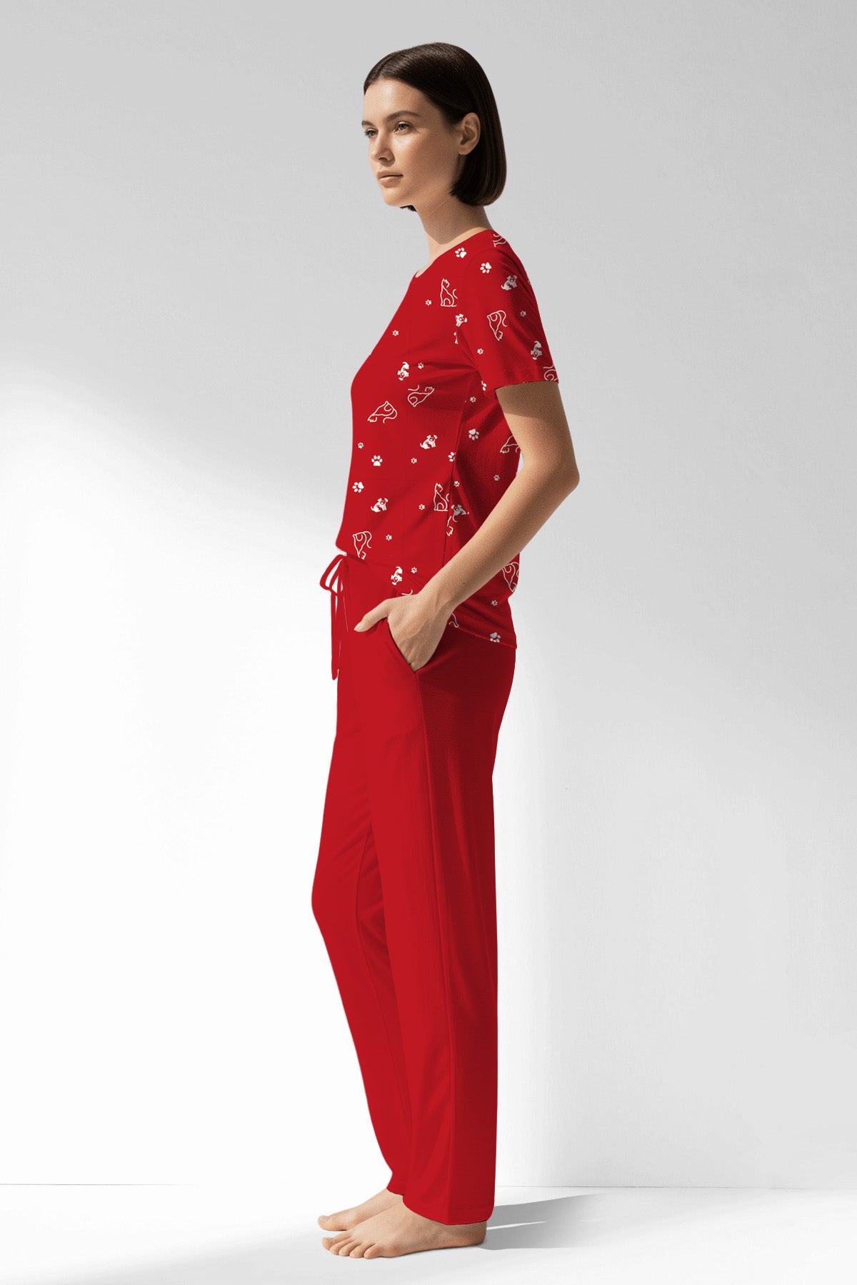 Woman Polyviscon Catty Pocket Detail Pyjama Set