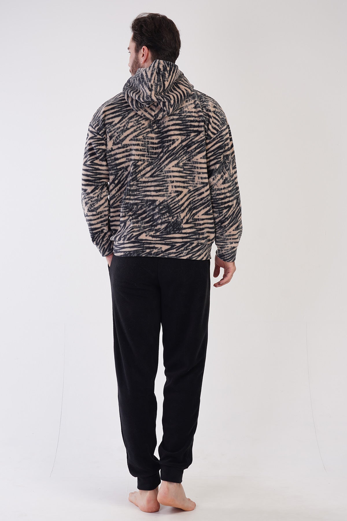 CEPLI ERKEK POLAR KAPSONLU DUSUK OMUZLU FERMUARLI UZUN KOL MANSETLI PIJAMA TAKIM