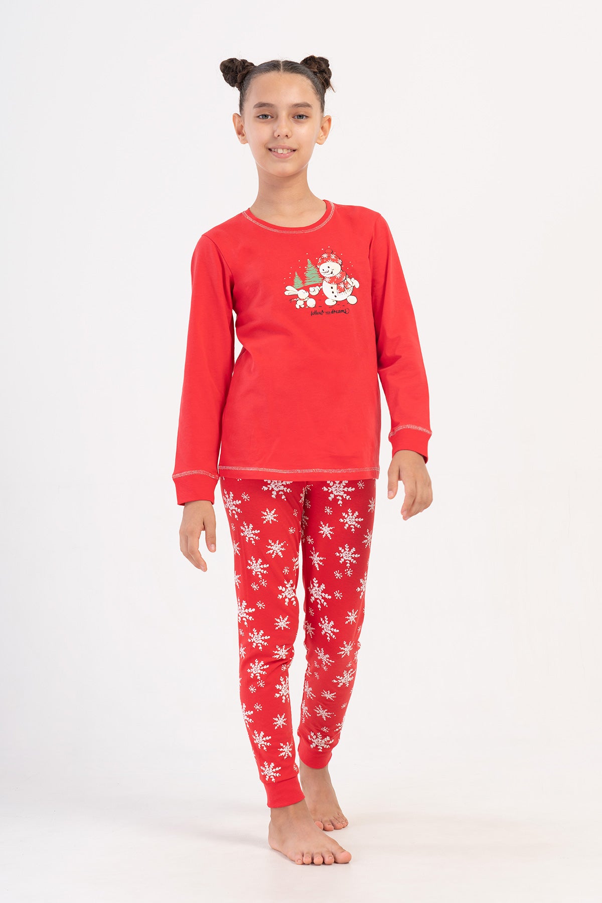 Kids' Girl Christmas Theme Supreme O Neck Long Sleeve Pyjama Set