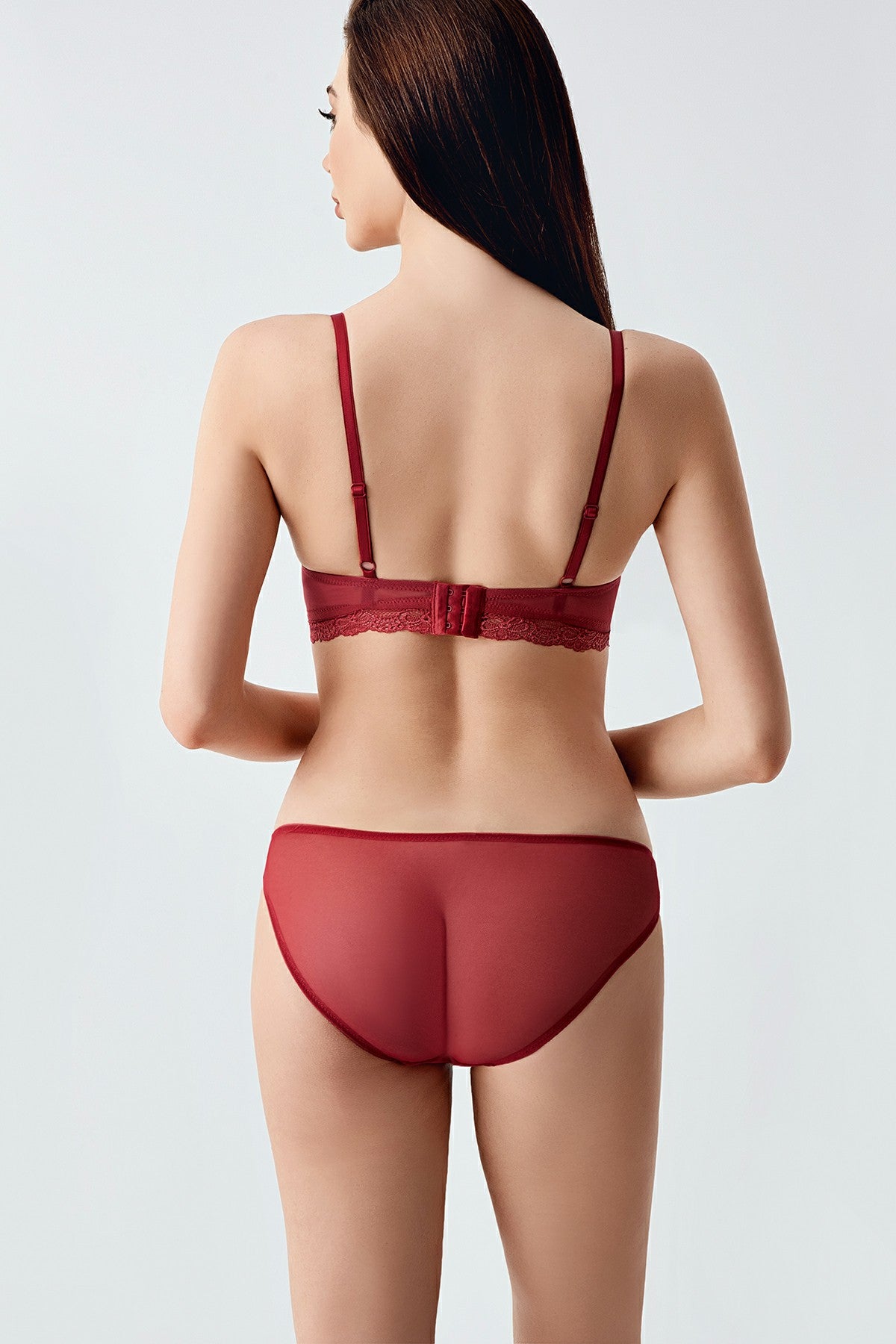 • Kadın C Cup Desteksiz Sütyen Külot Takım 344161 - VienettaBORDO80