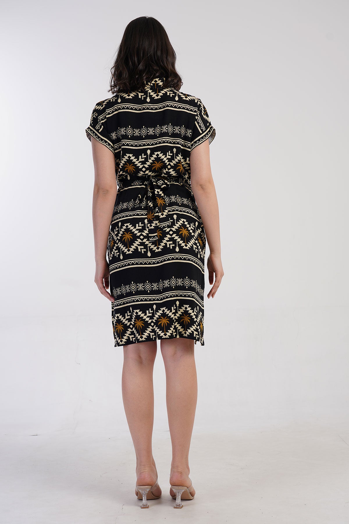 KADIN BELMANDO YARASA KOL AGZI DOUBLE KATLAMA KEMER TOKALI GOMLEK ELBISE