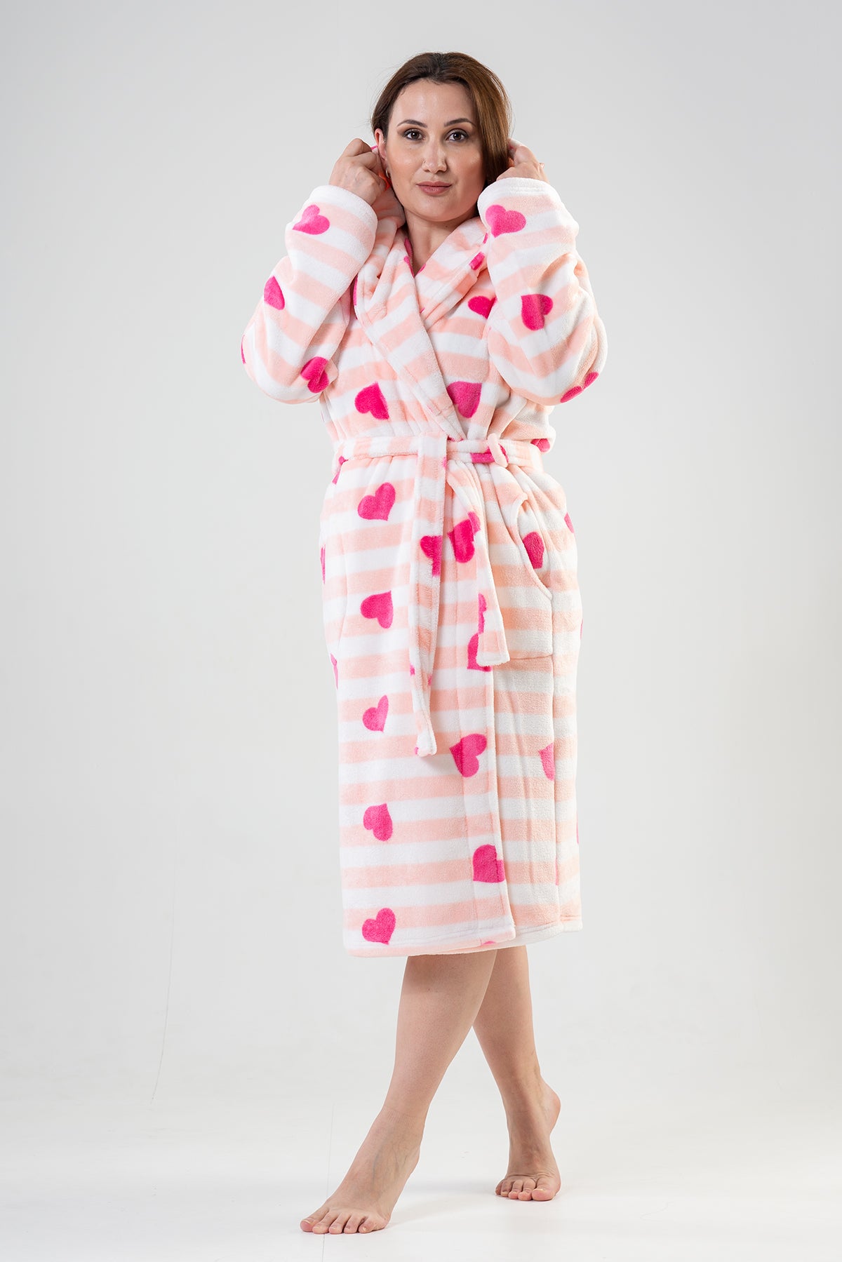 Woman Big Size Hoodie Long Sleeve Pocket Detail Softy Heart Dressing Gown