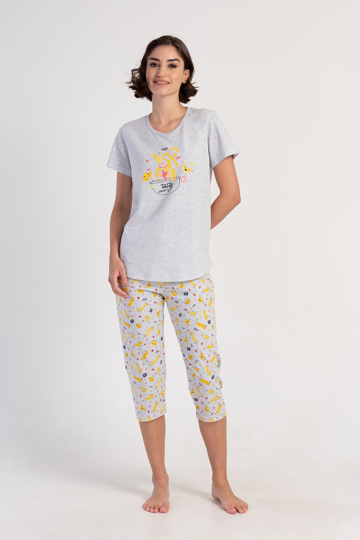 Woman Tasty Supreme Short Sleeve O Neck Capri Set