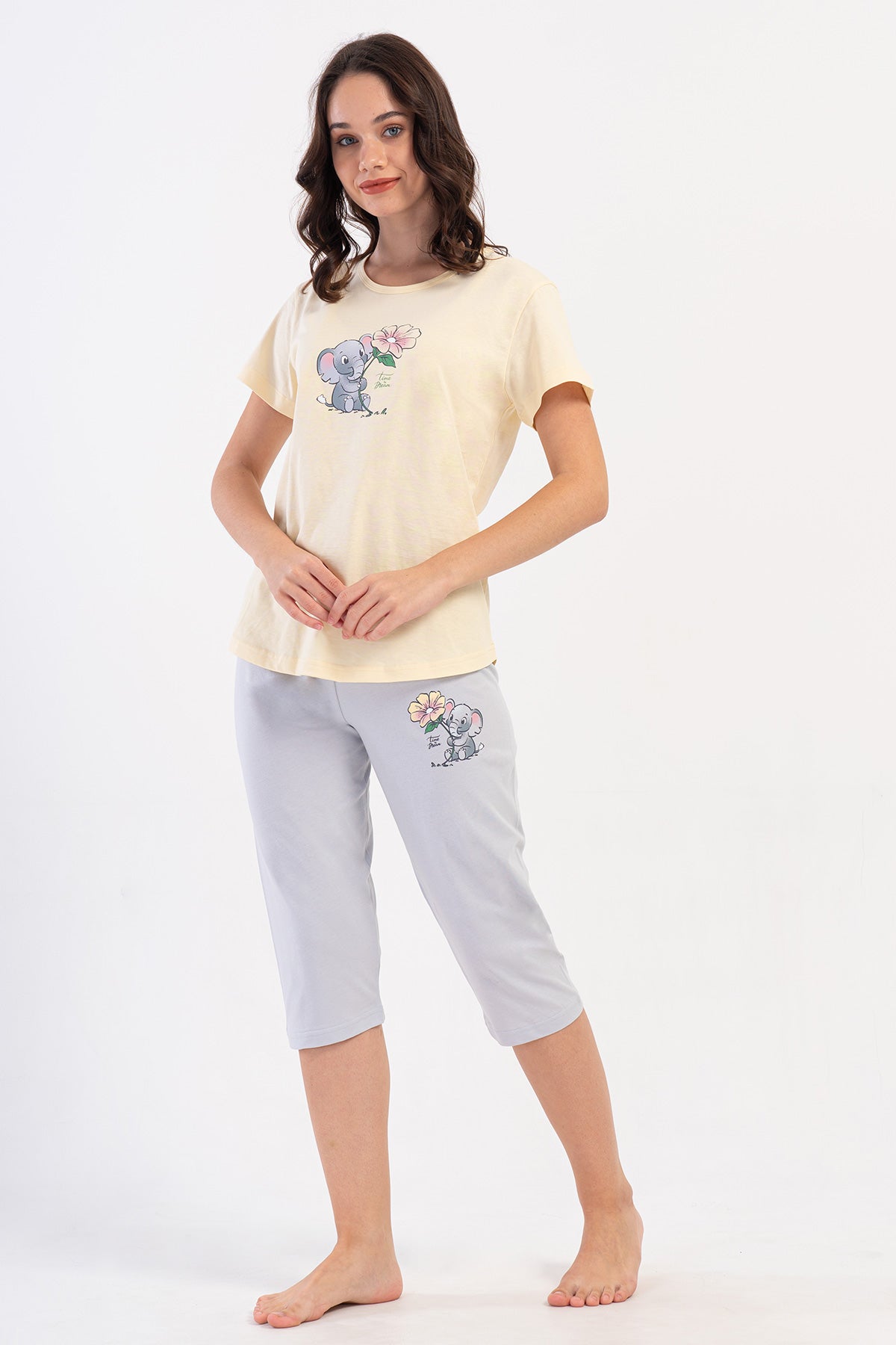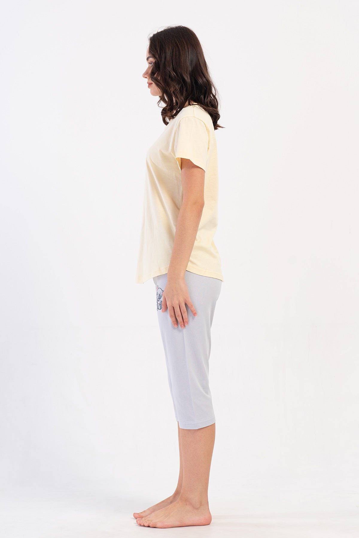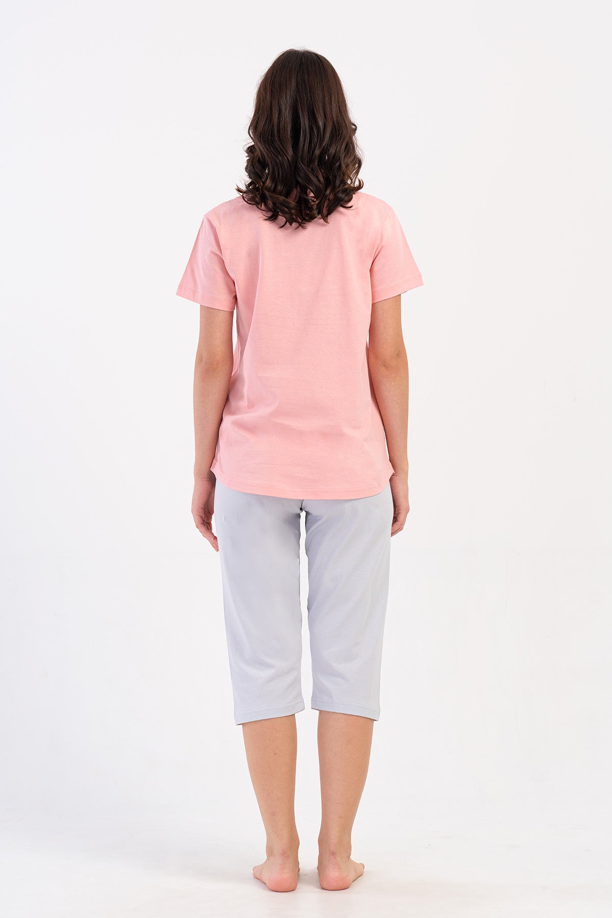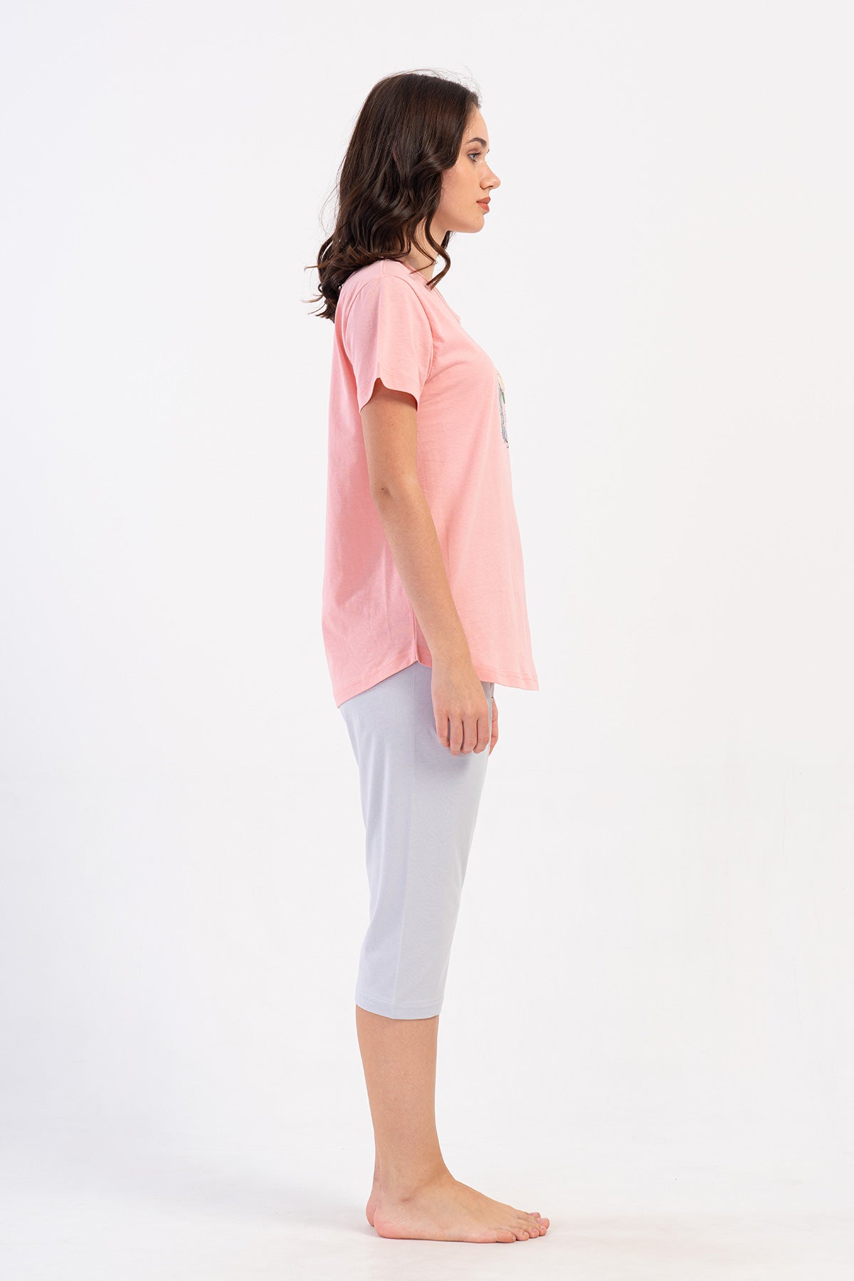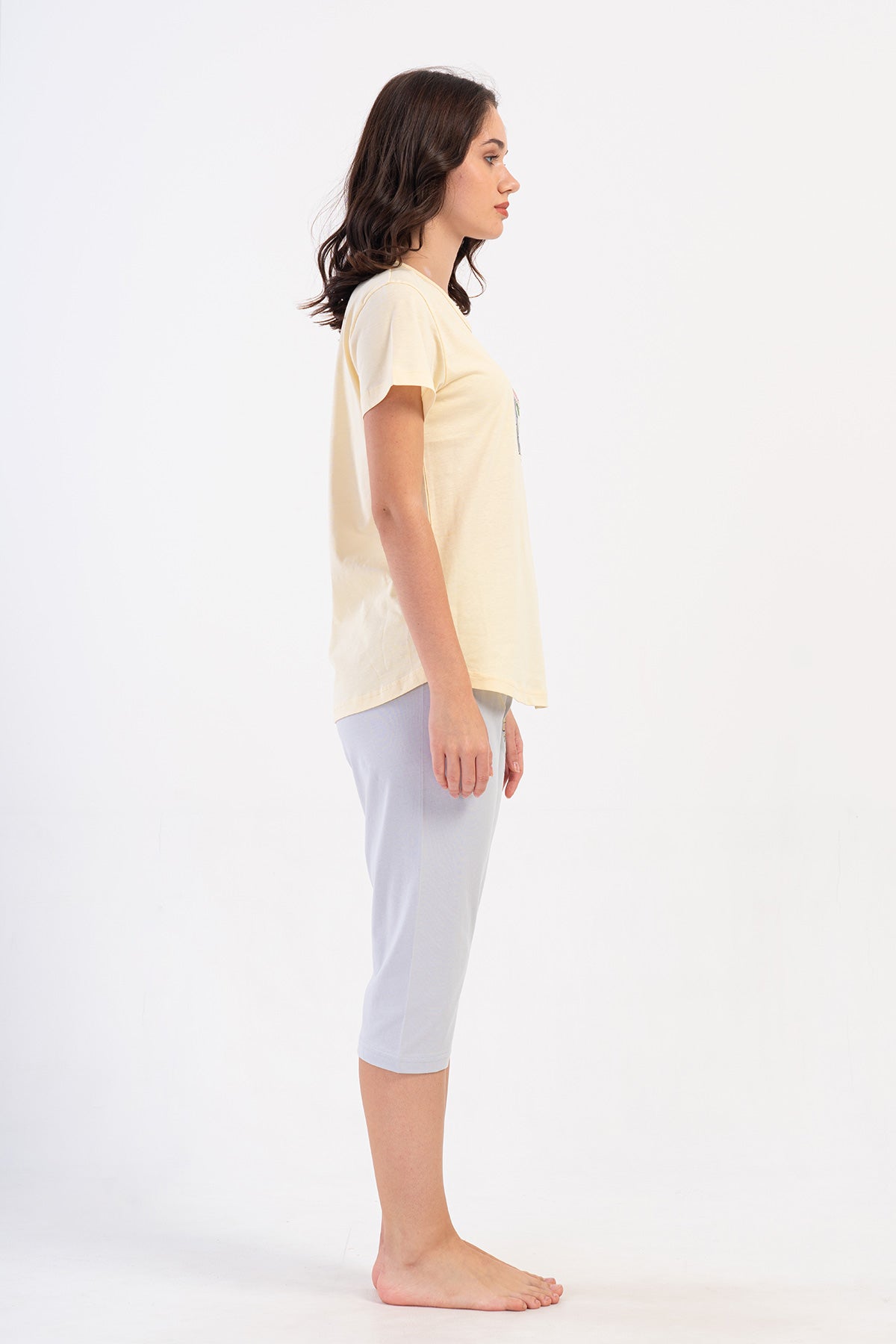Woman Supreme Pose Short Sleeve O Neck Capri Set