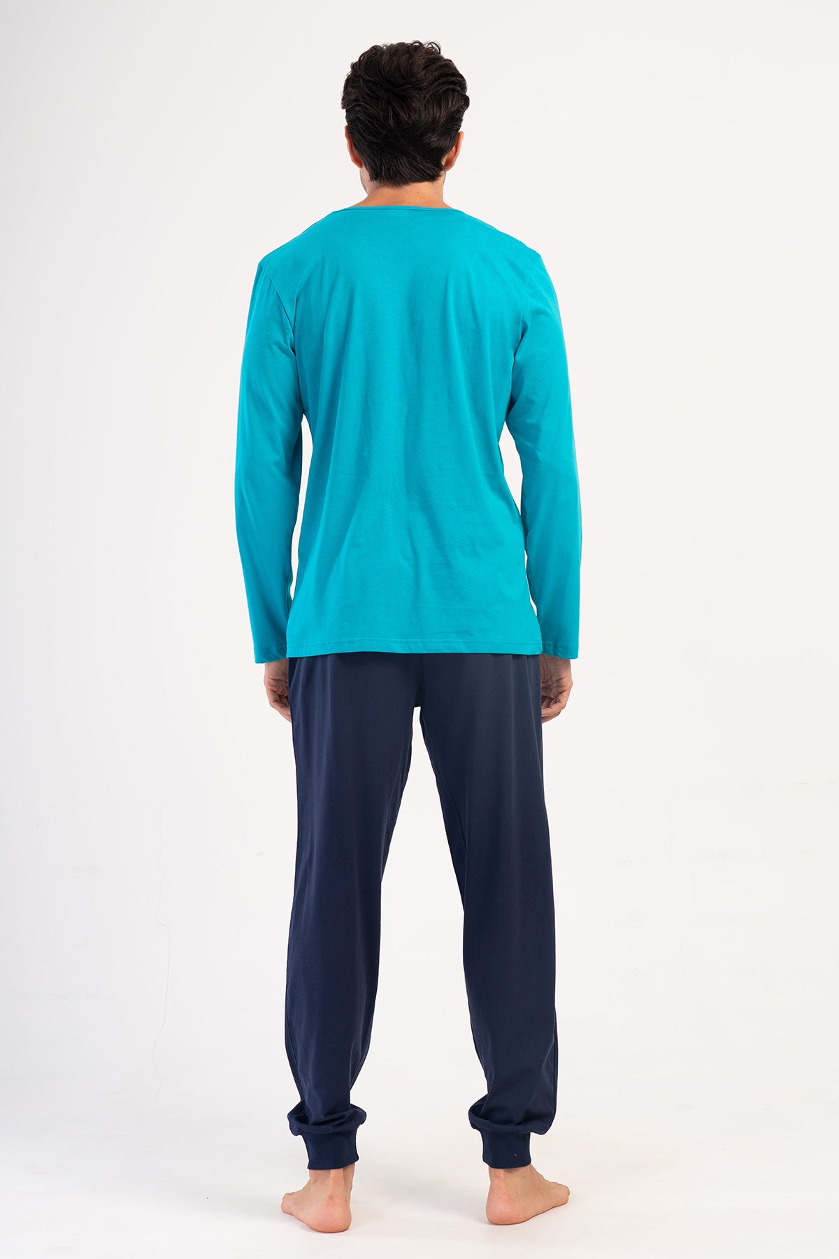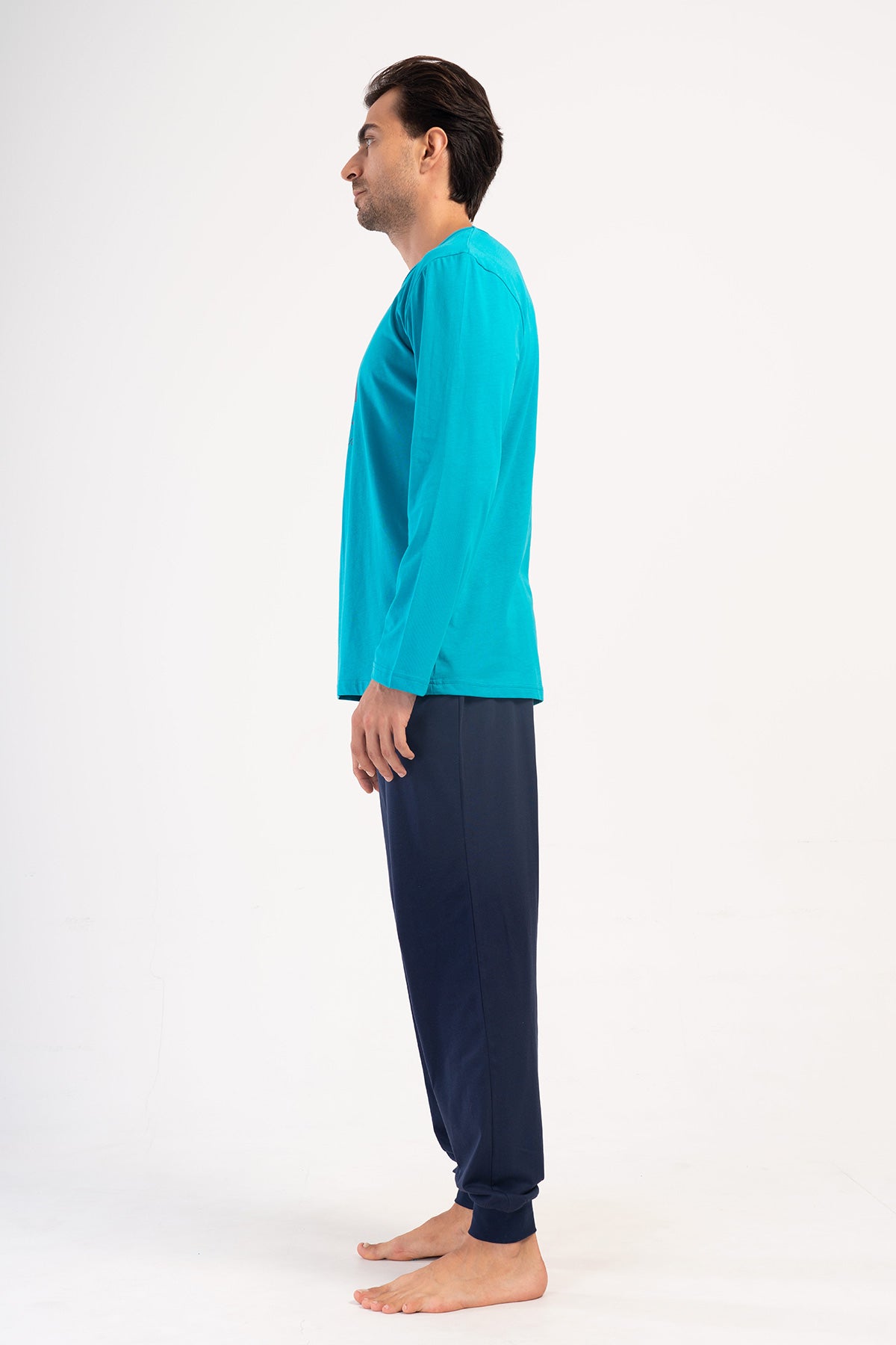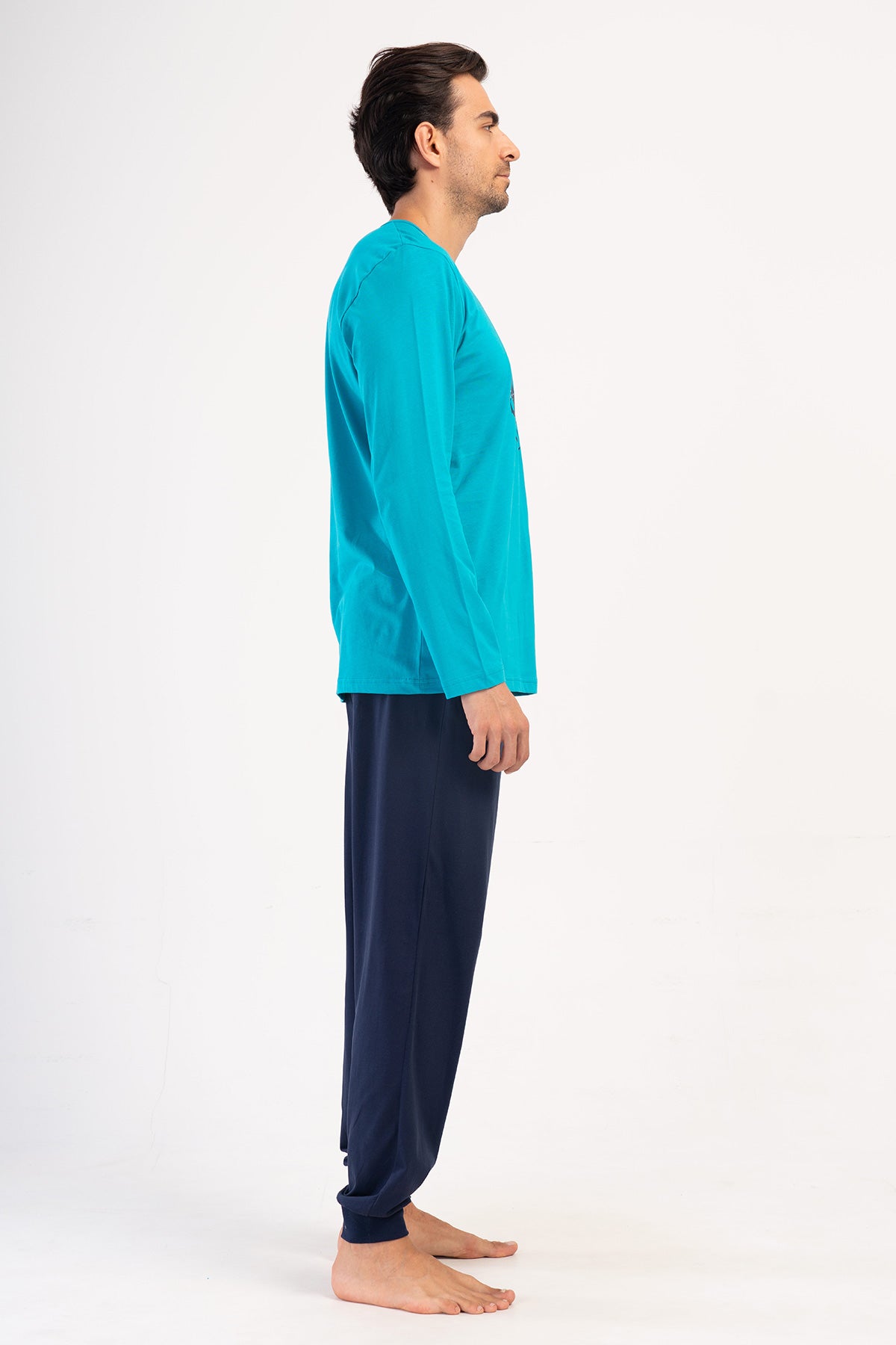 Man Reda Supreme Big Size O Neck Long Sleeve Pocket Detail Pyjama Set