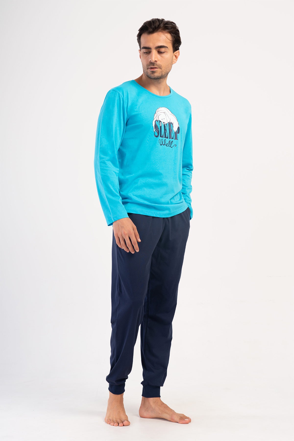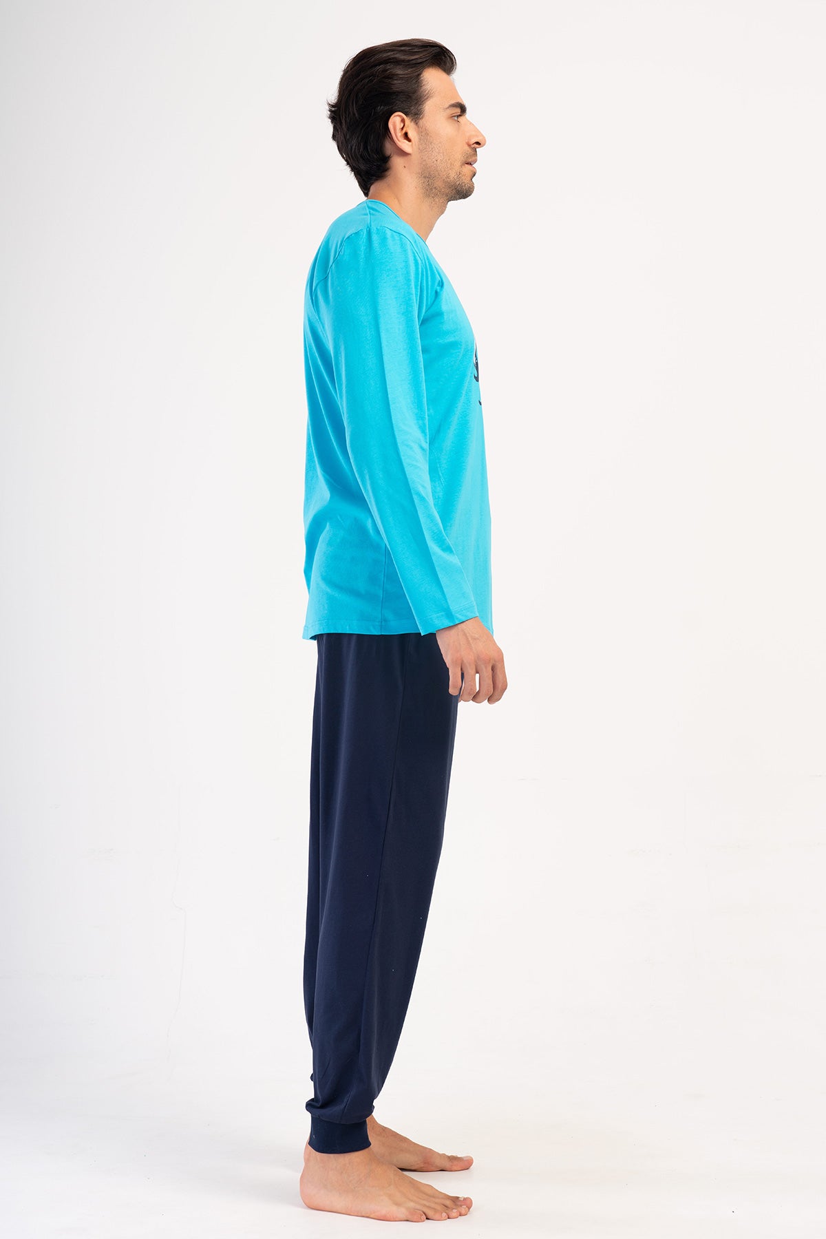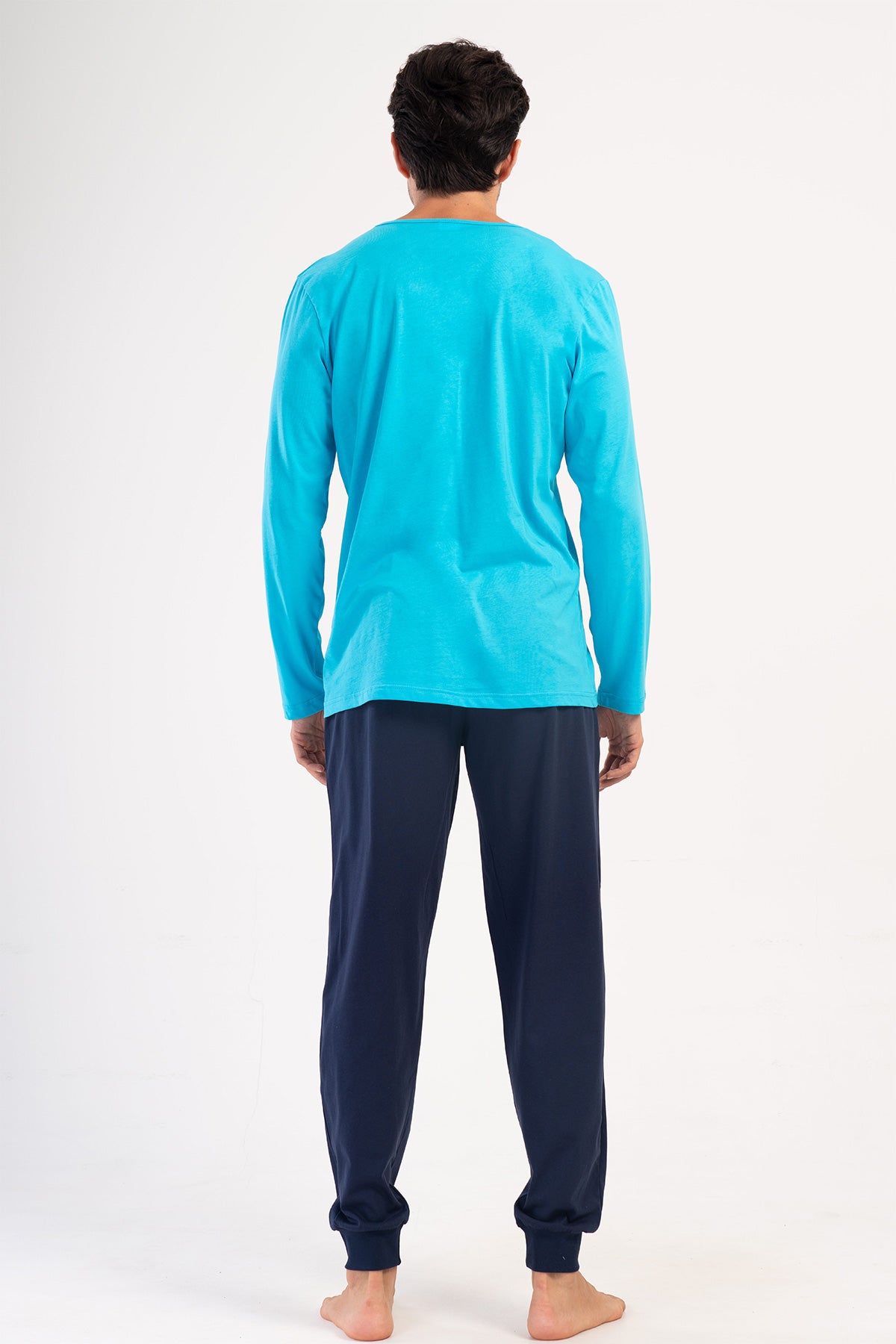 Man Reda Supreme Big Size O Neck Long Sleeve Pocket Detail Pyjama Set