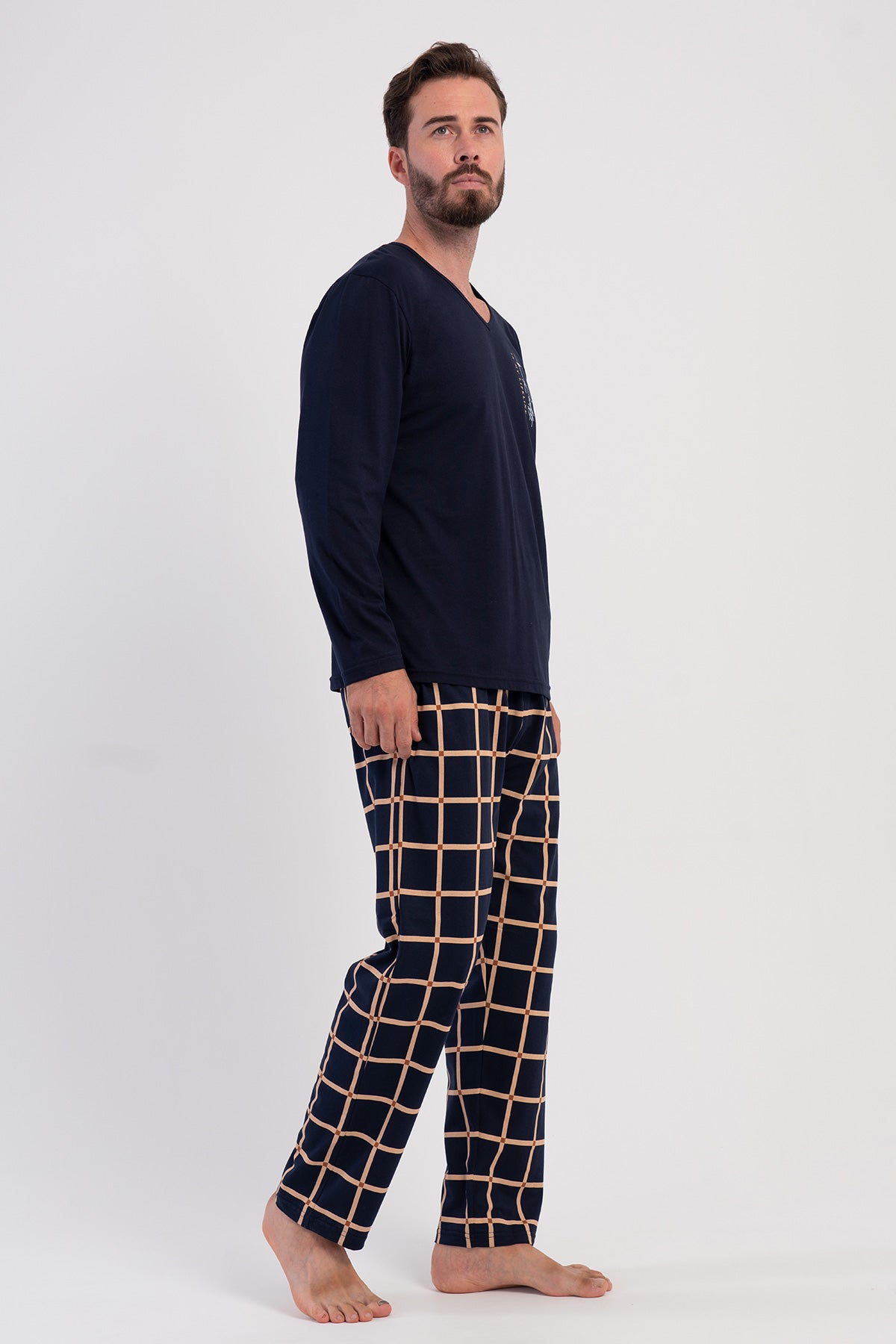 Man Supreme Big Size Deffy Long Sleeve V Neck Pyjama Set. Vienetta pajama sets combine soft fabrics and elegant prints to make your nights more peaceful. The most stylish way to unwind after a long day.