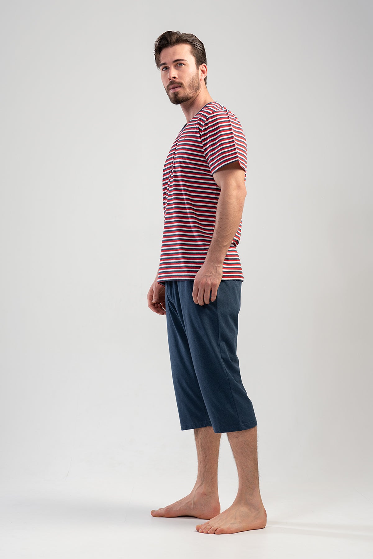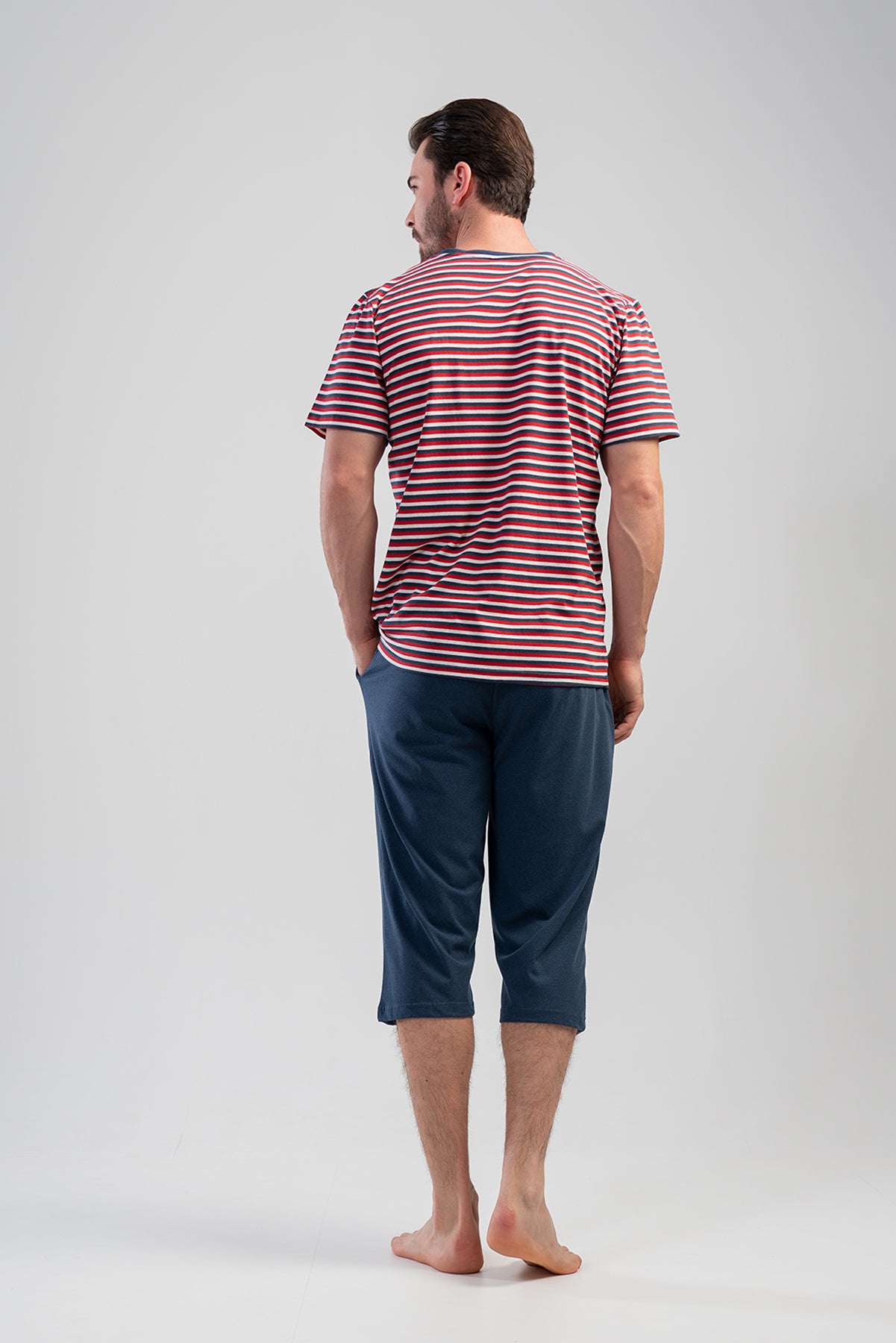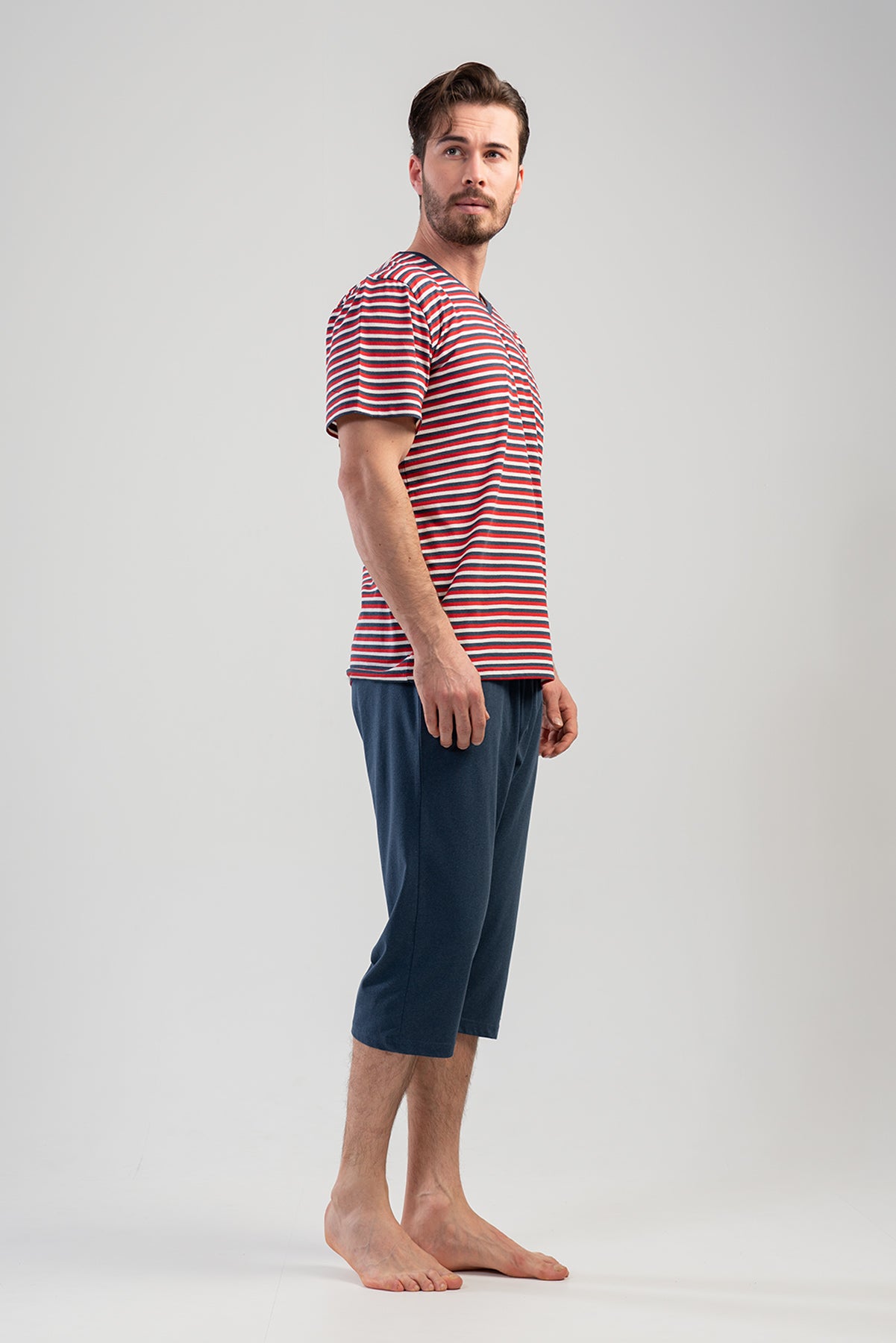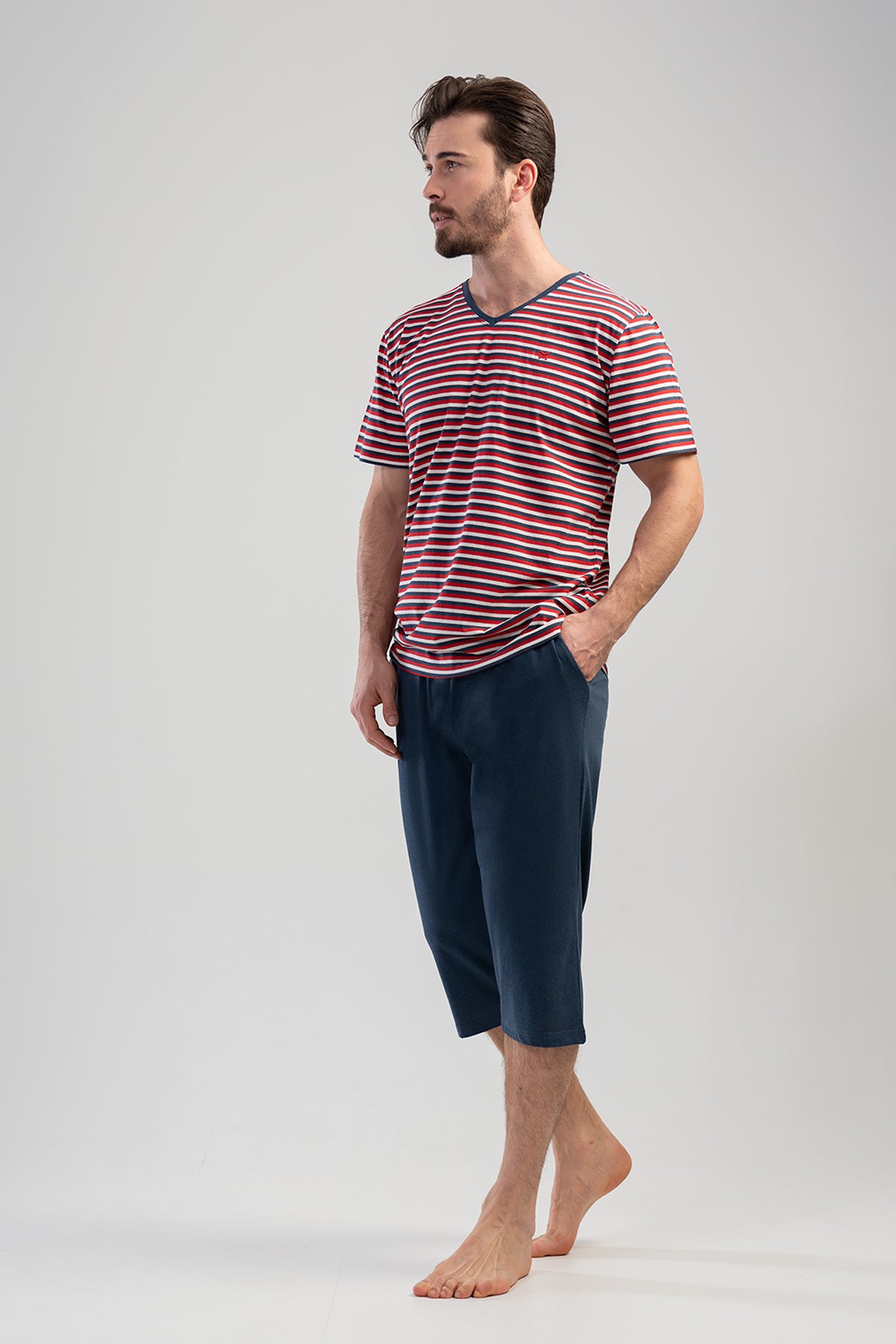 Man Supreme V Neck Short Sleeve Pocket Detail Peny Capri Set