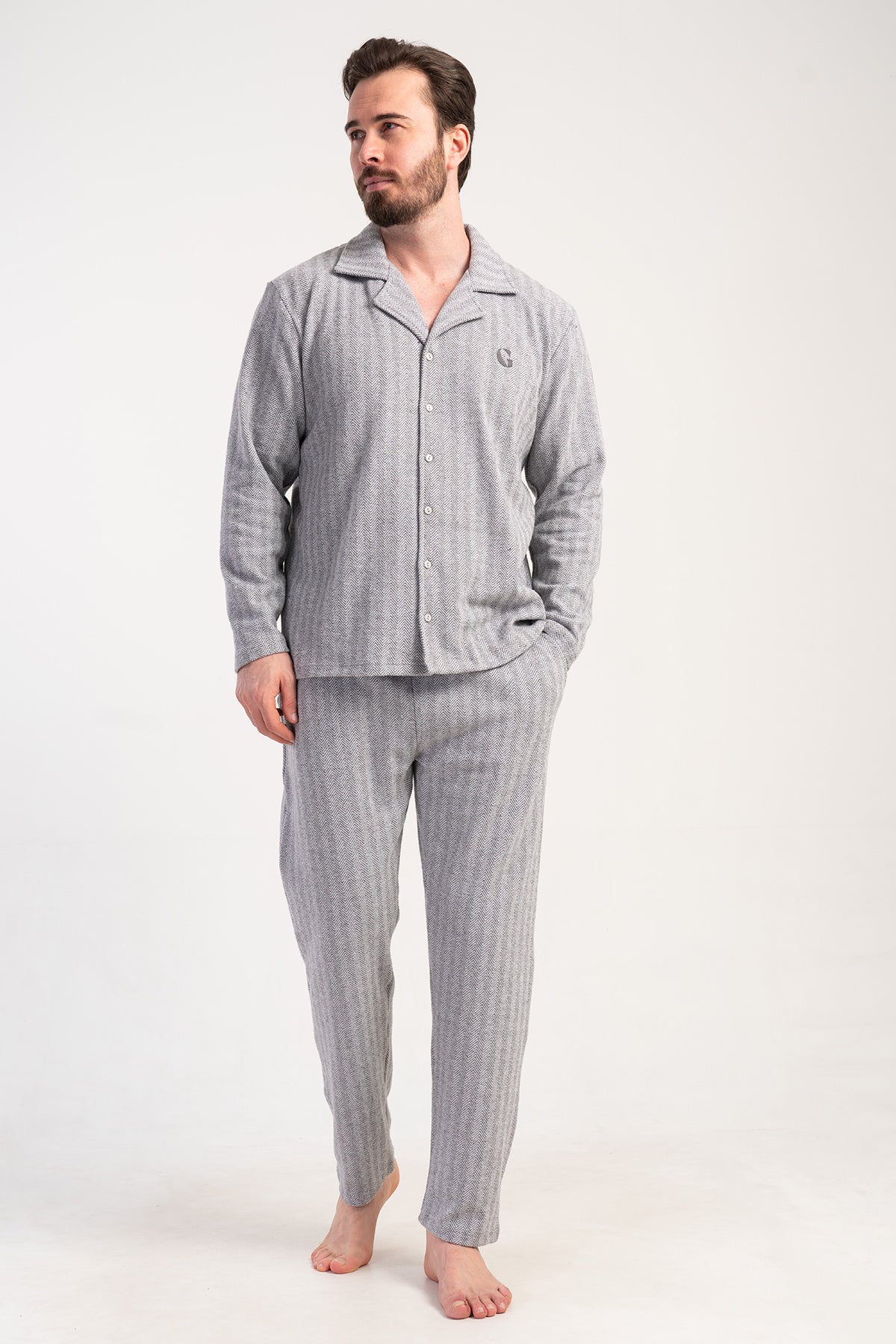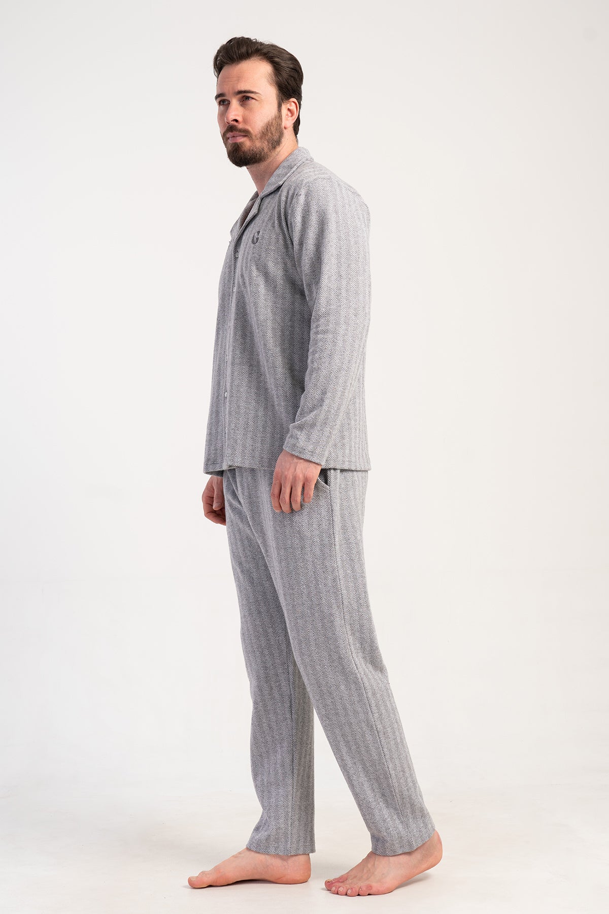 Man Jacquard Interlock Long Sleeve Obran Pyjama Set. Vienetta pajama sets offer soft fabric and ergonomic fit to ensure comfortable, restful nights. Order Now!