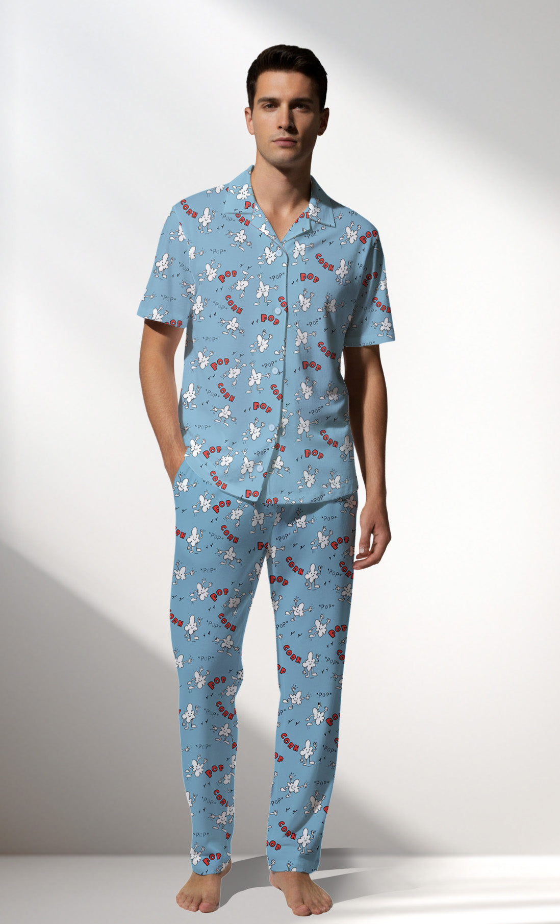 Man Supreme PopcornLove Short Sleeve Buttoned Pyjama Set