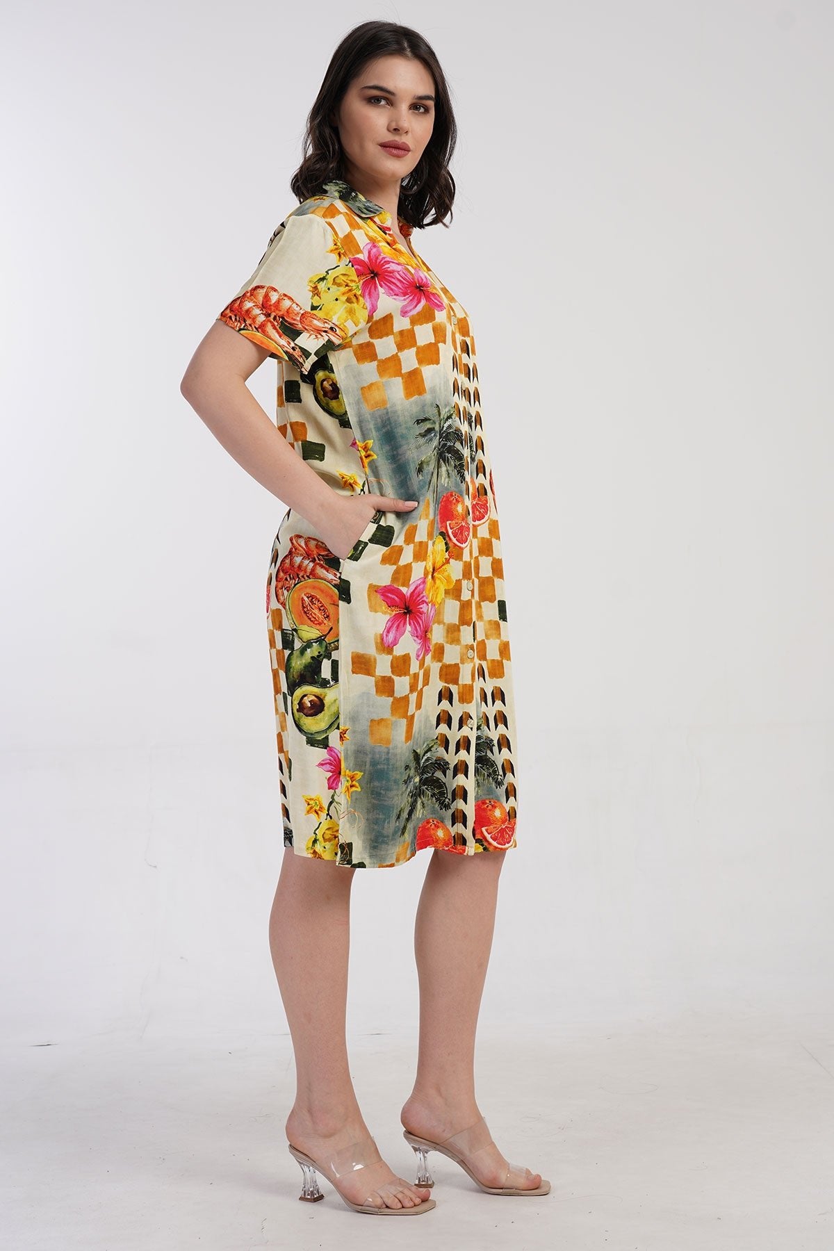 KADIN BELMANDO PATLI V YAKA KISA KOL YANLAR YIRTMACLI GOMLEK ELBISE