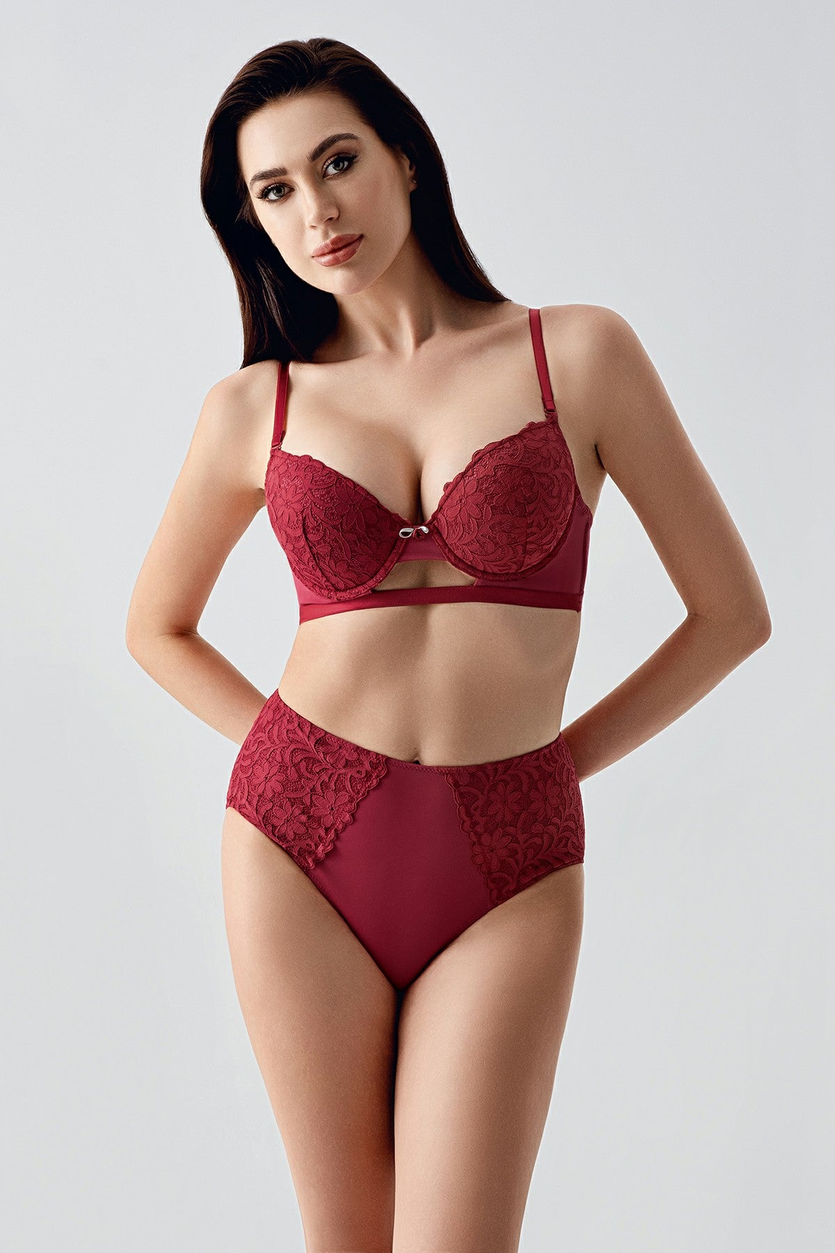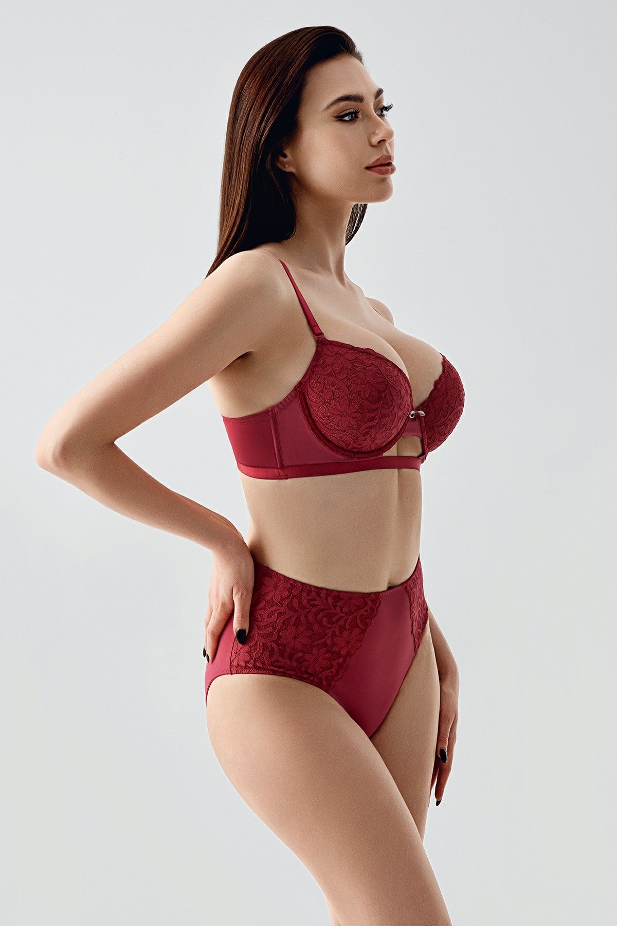 • Kadın B Cup Destekli Sütyen Külot Takım 334159 - VienettaBORDO80