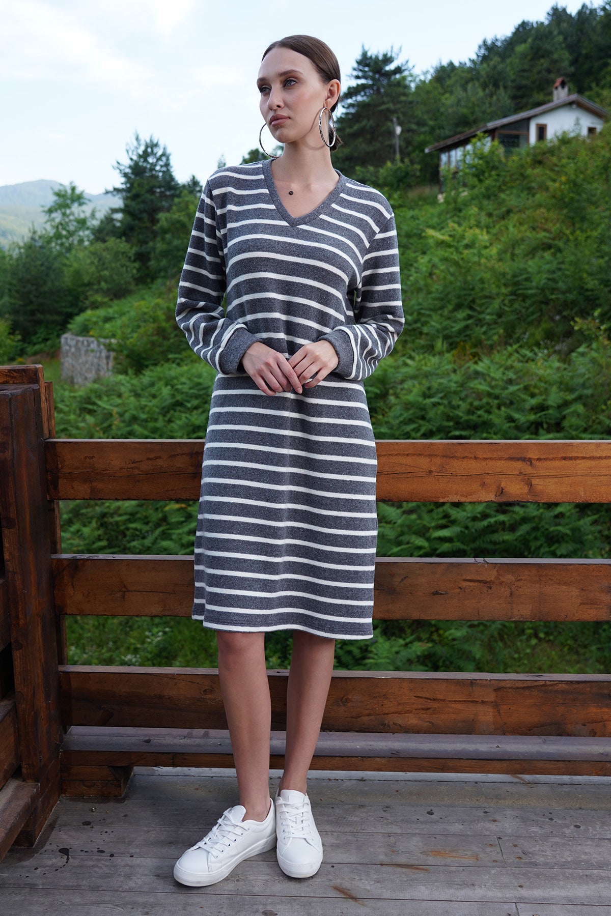 KADIN LYC REJENERE SUPREM V YAKA UZUN KOL MANSETLI ELBISE