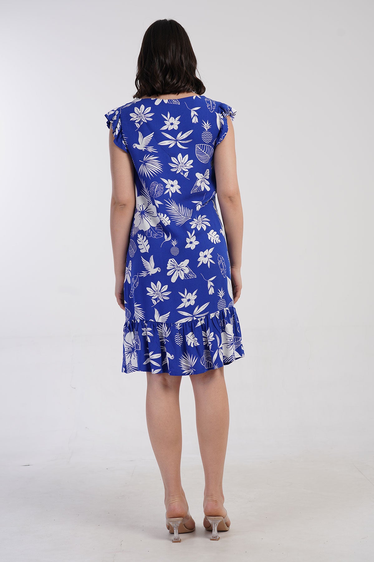 KADIN BELMANDO V YAKA KOLLARI FIRFIRLI ETEK PARCALI BUZGULU ELBISE