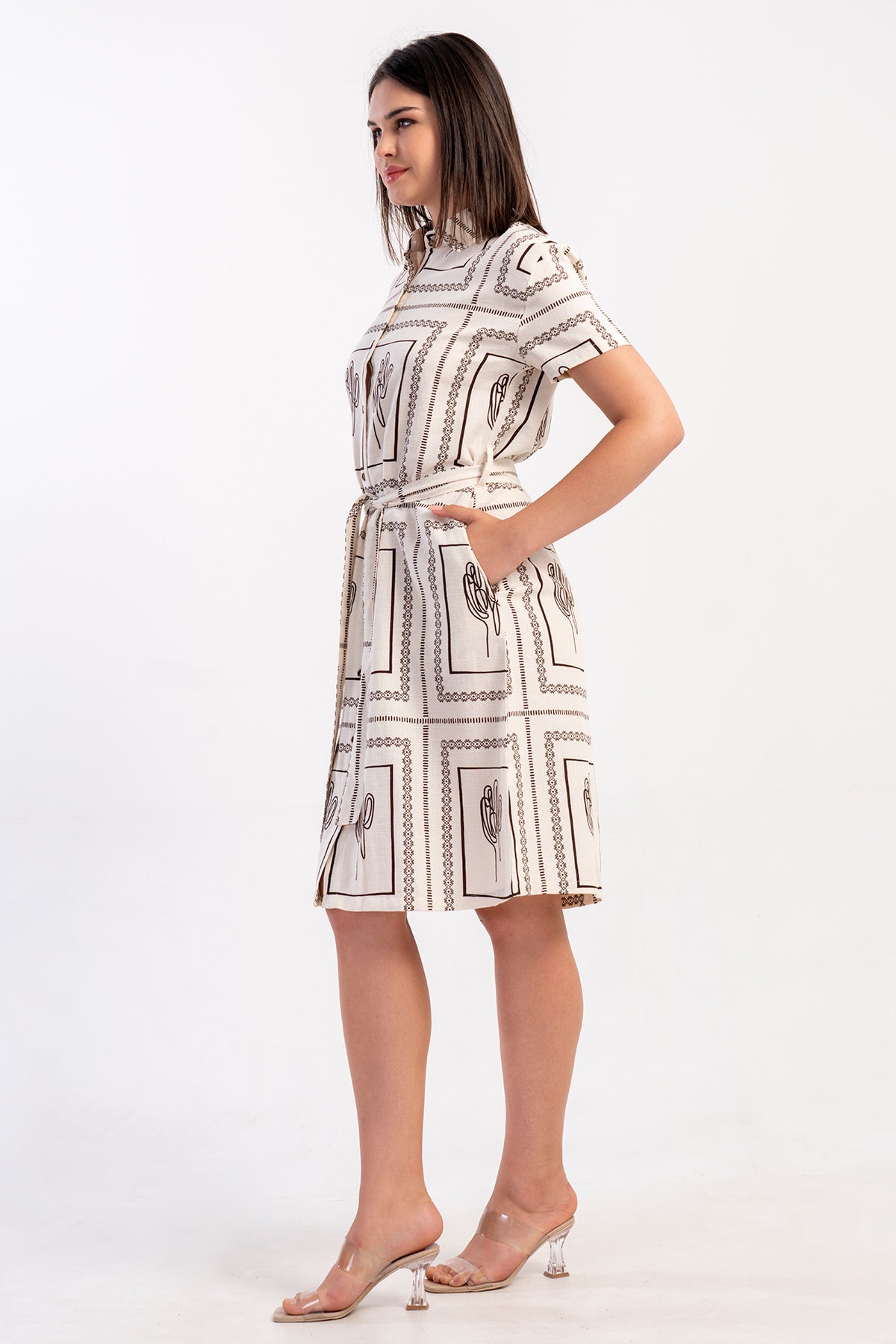 KADIN KIBRIS KISA KOL CEPLI KEMERLI GOMLEK ELBISE