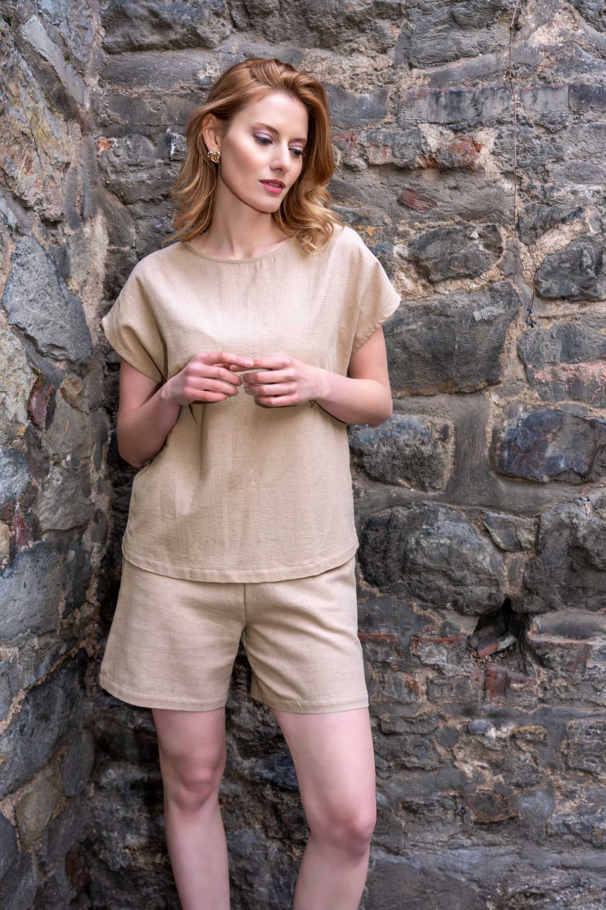Woman Cotton Pocket Detail Bat Sleeve Yase Blouse Short Set. Vienetta short sets are designed with well fabrics to keep you cool during warm summer out nights. They blend comfort and style for perfect outwear.