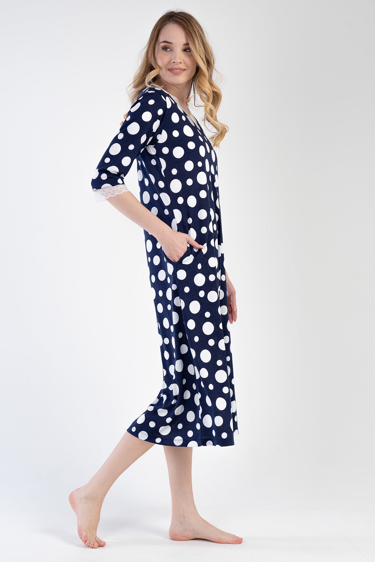 KADIN P.MODAL V YAKA 3/4KOL CEPLI ELBISE