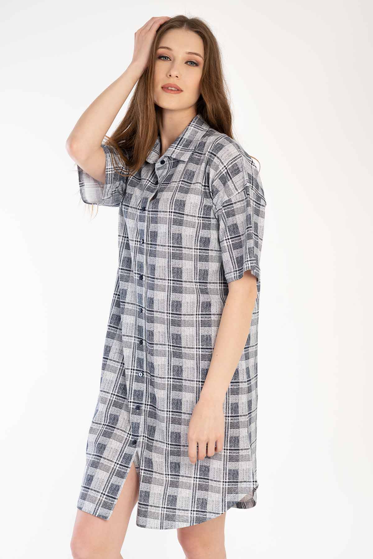 • KADIN SUPREM TAMAMI DUGMELI KISA KOL GOMLEK TUNIK 303295 - Vienetta1.GrupGRI