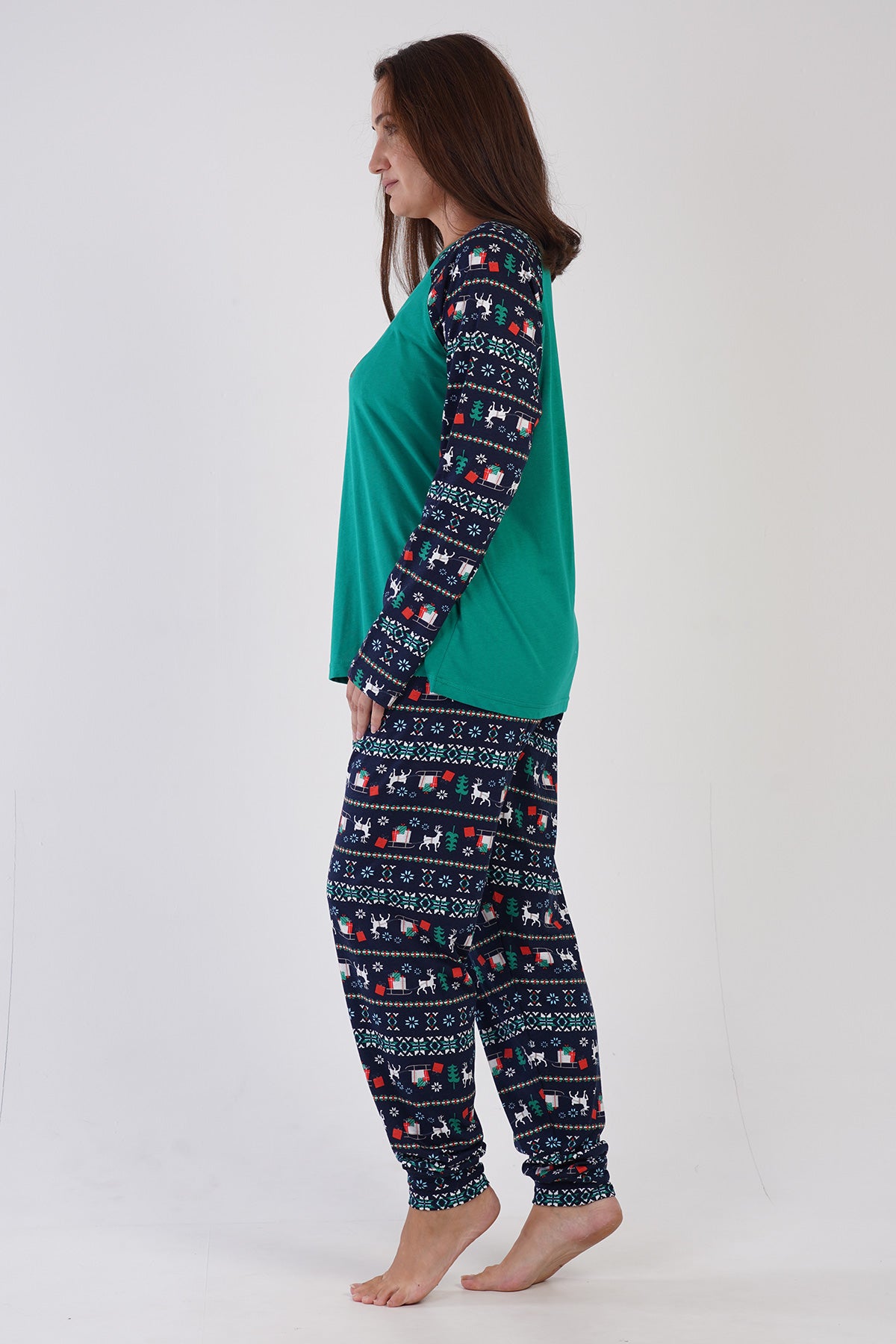 KADIN P.SUPREM XXL O YAKA REGLAN UZUN KOL ETEGI OVAL MANSETLI PIJAMA TAKIM