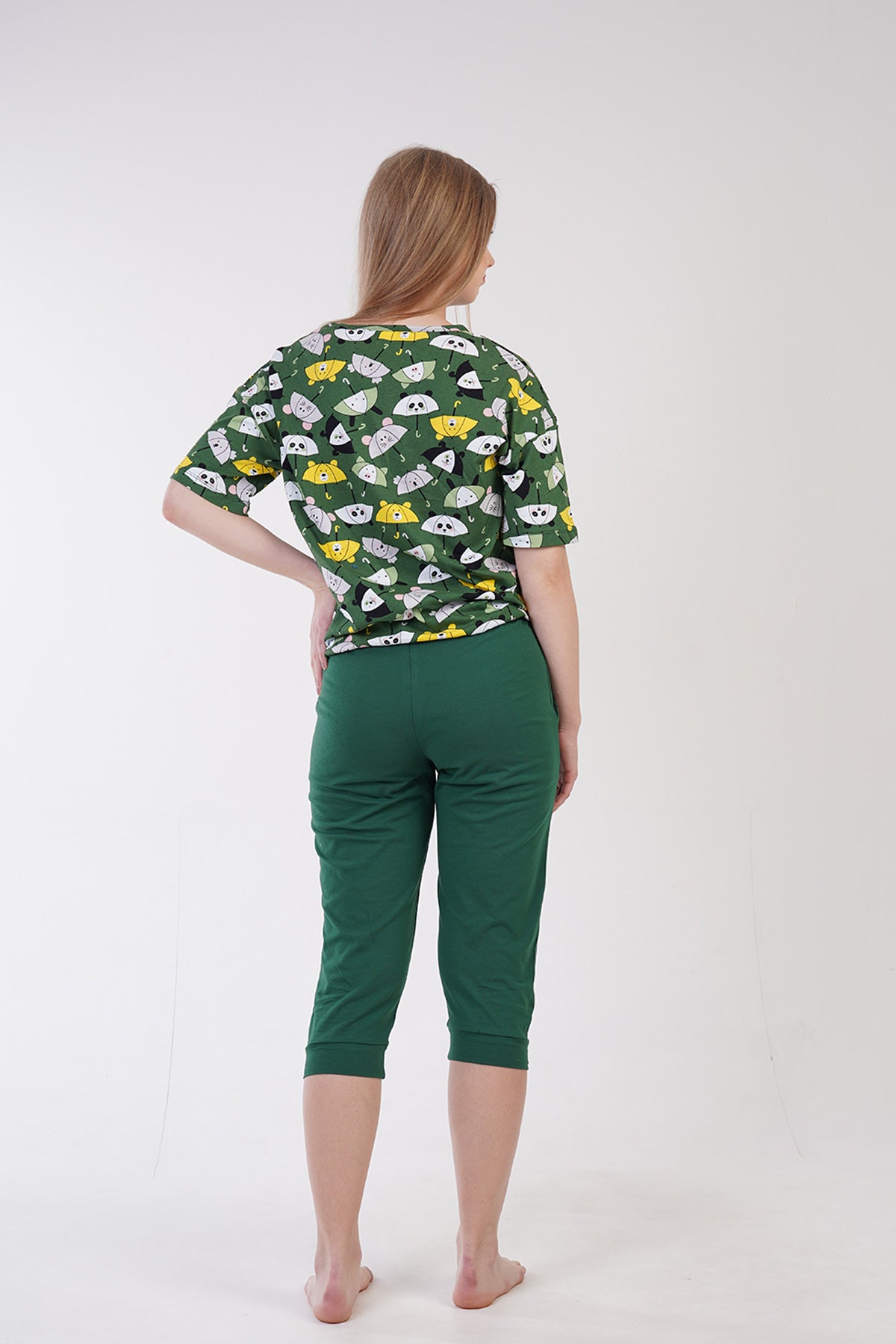 KADIN P.SUPREM O YAKA DUSUK OMUZLU KISA KOL BELI BUZGULU CEPLI MANSETLI KAPRI TAKIM