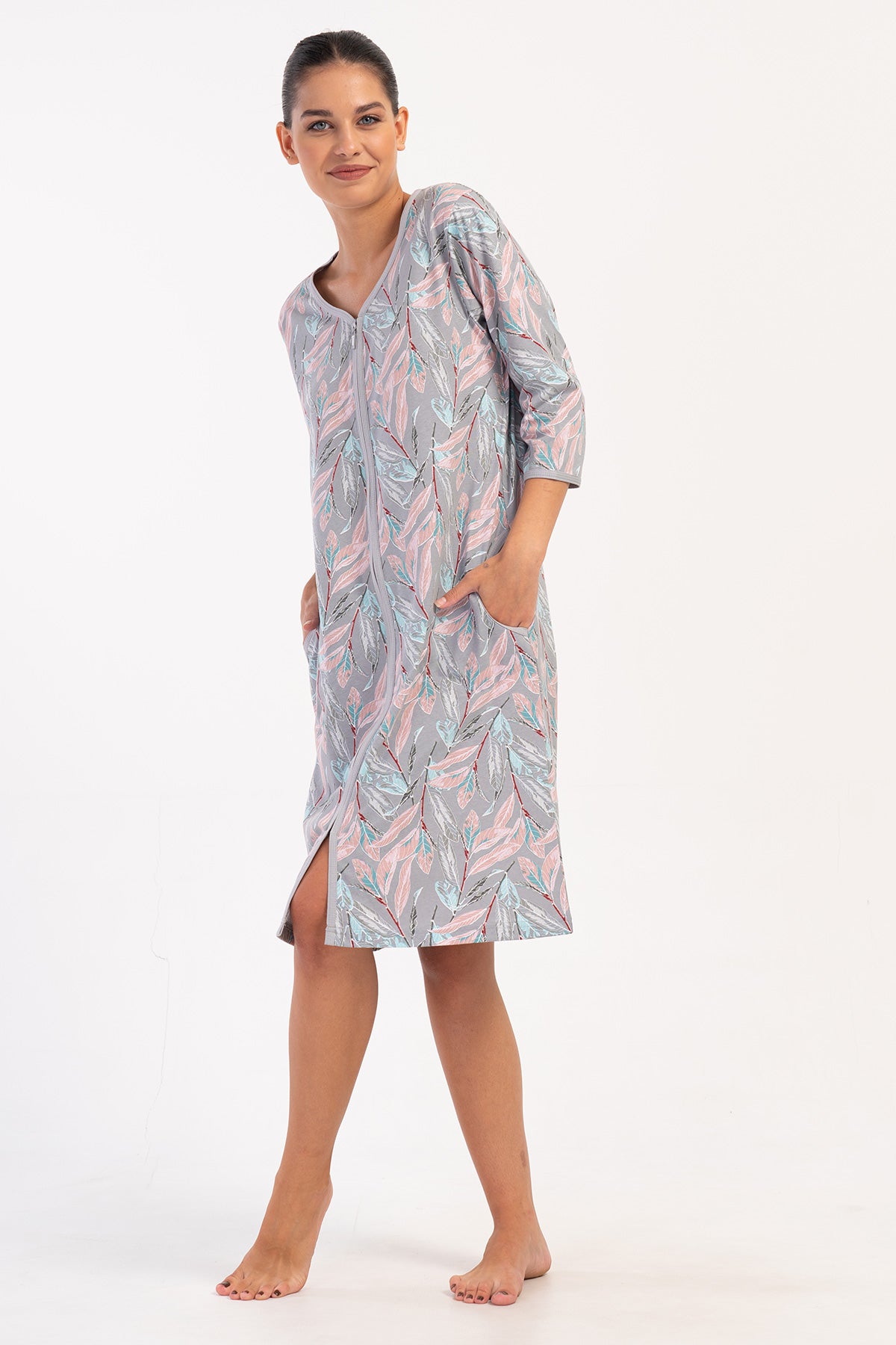 KADIN P.SUPREM FERMUARLI 3/4KOL CEPLI EV ELBISESI