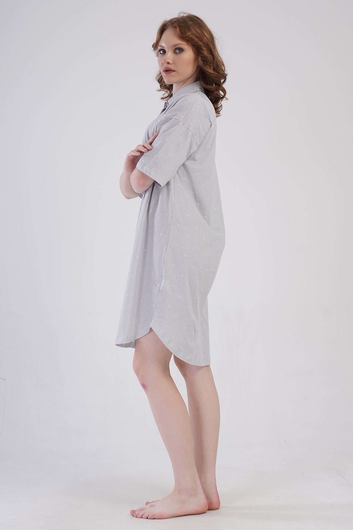 KADIN P.SUPREM DUSUK OMUZLU TAMAMI DUGMELI KISA KOL ETEGI OVAL GOMLEK TUNIK