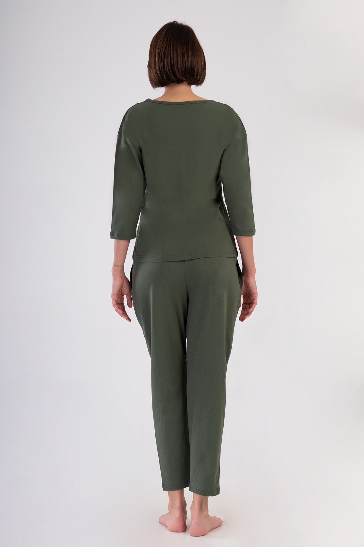 KADIN P.SUPREM O YAKA DUSUK OMUZLU 3/4KOL PILELI CEPLI 7/8 BOY PIJAMA TAKIM