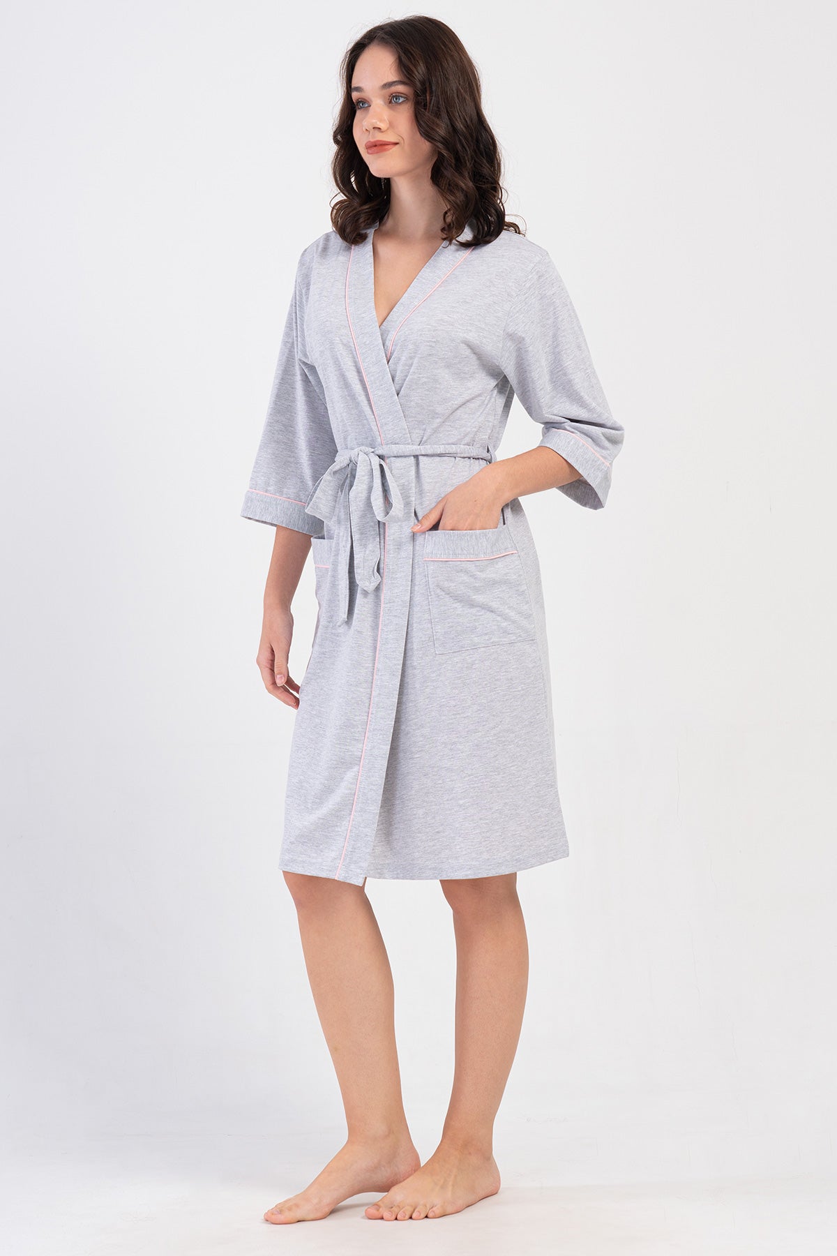 Woman Supreme Big Size Vely Poor Sleeve Pocket Detail Dressing Gown