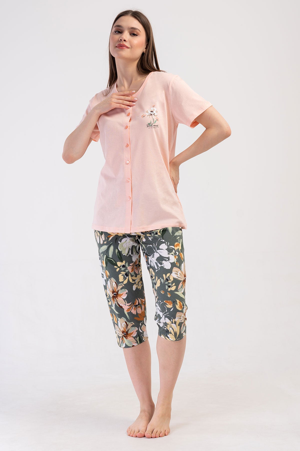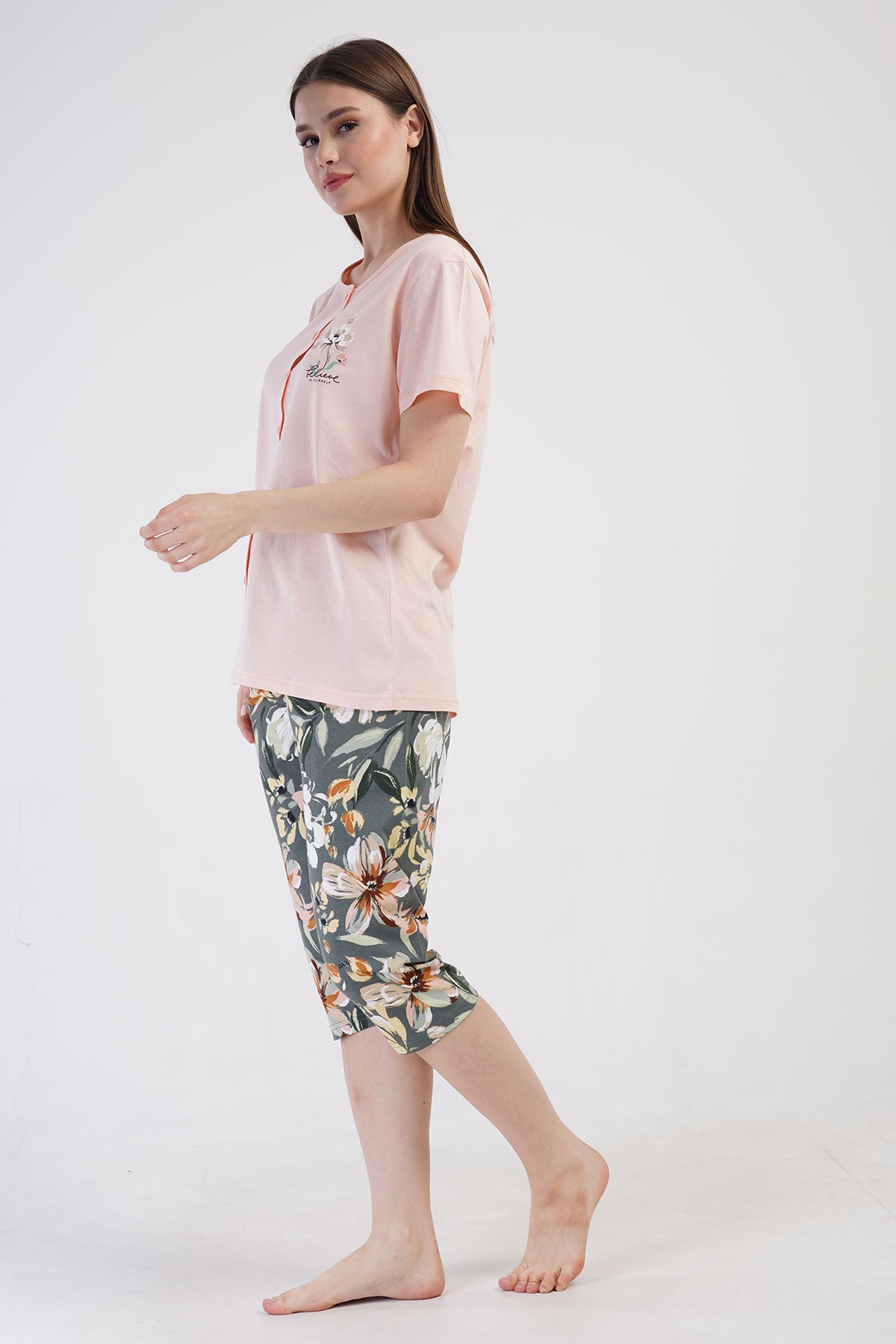 Woman Supreme Hera P Neck Short Sleeve Capri Set. Vienetta capri pajama sets deliver lightweight breathability and perfect comfort on warm summer nights. Order Now!
