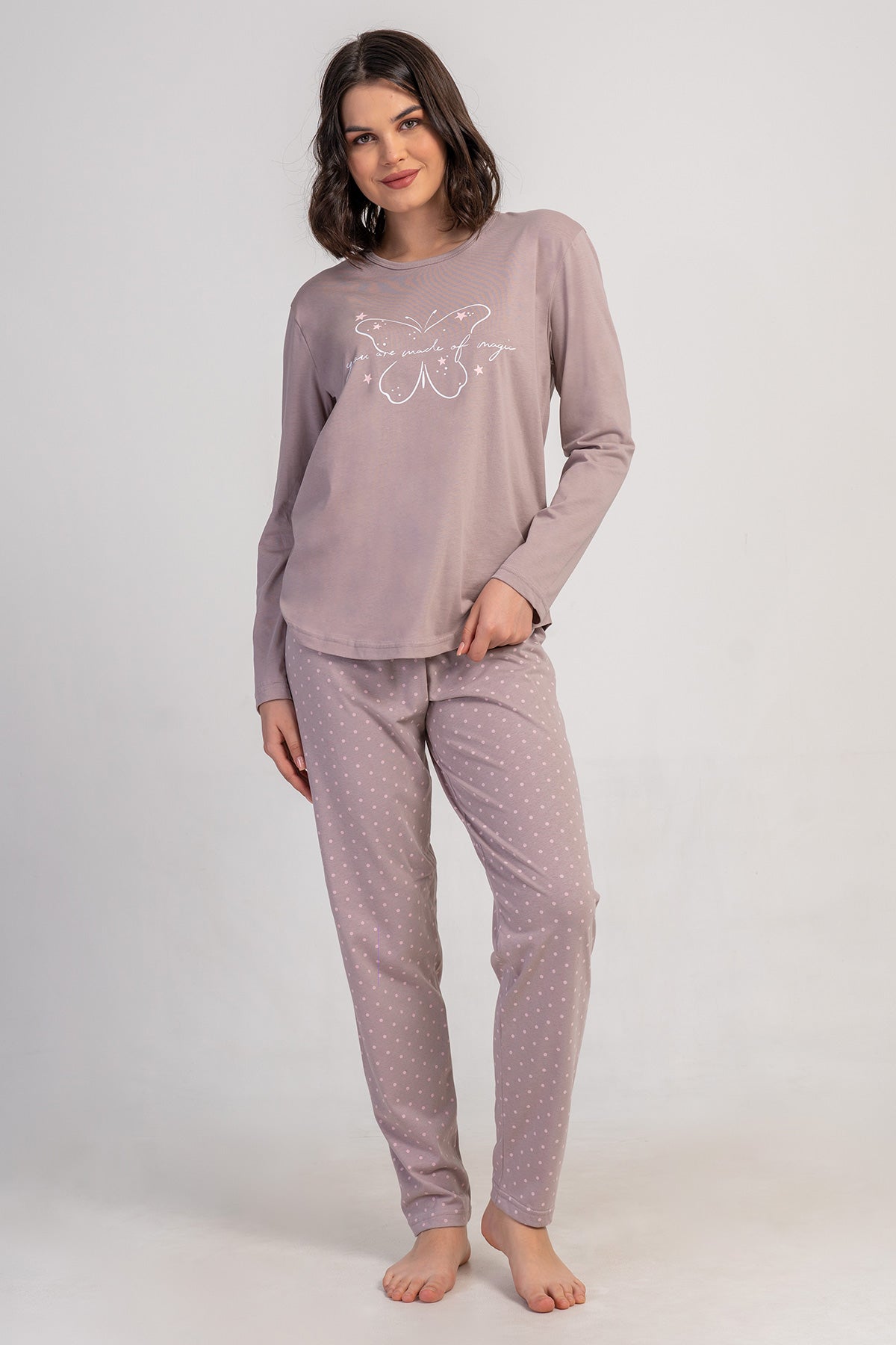 Woman Supreme Big Size Dina O Neck Long Sleeve Pyjama Set. Vienetta pajama sets combine soft fabrics and elegant prints to make your nights more peaceful. The most stylish way to unwind after a long day.