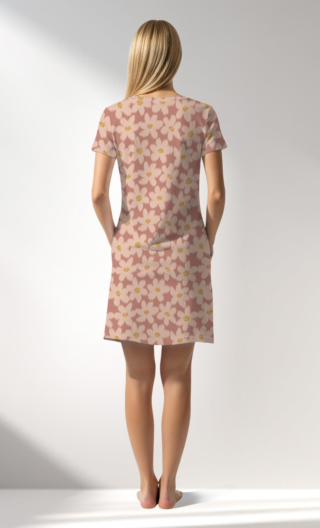 Woman Supreme RoseDown Rotation Short Sleeve Pocket Detail Tunic