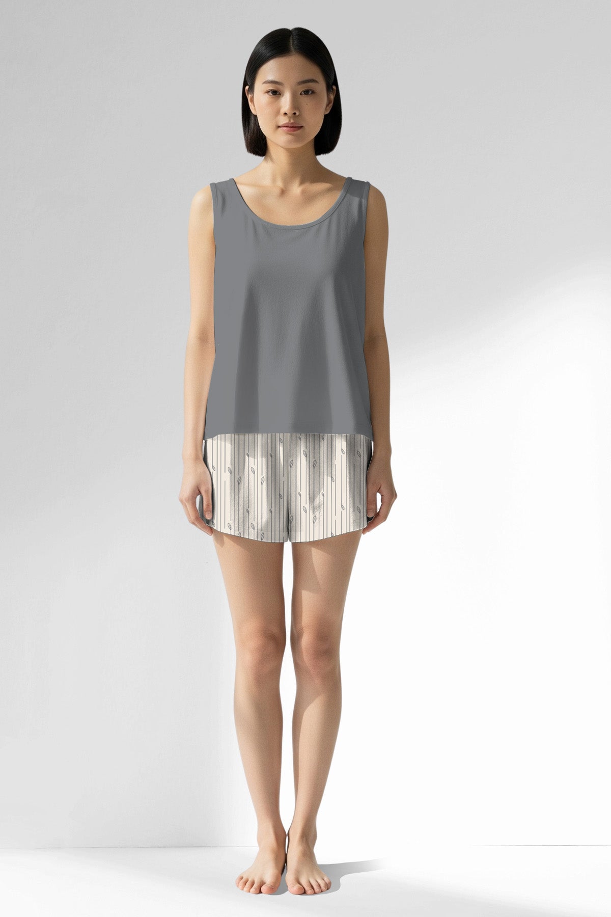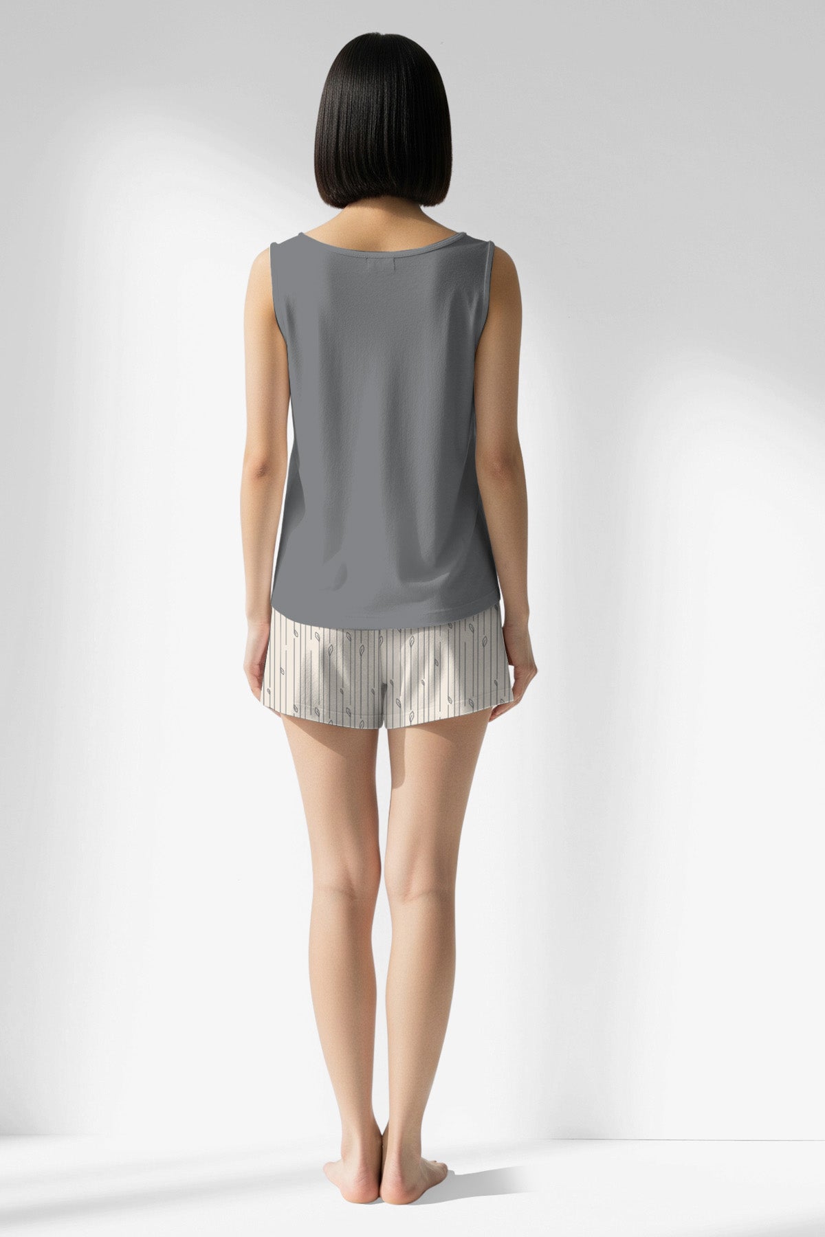 Woman Polyviscon Lina Thick Strap Sleeveless Short Set