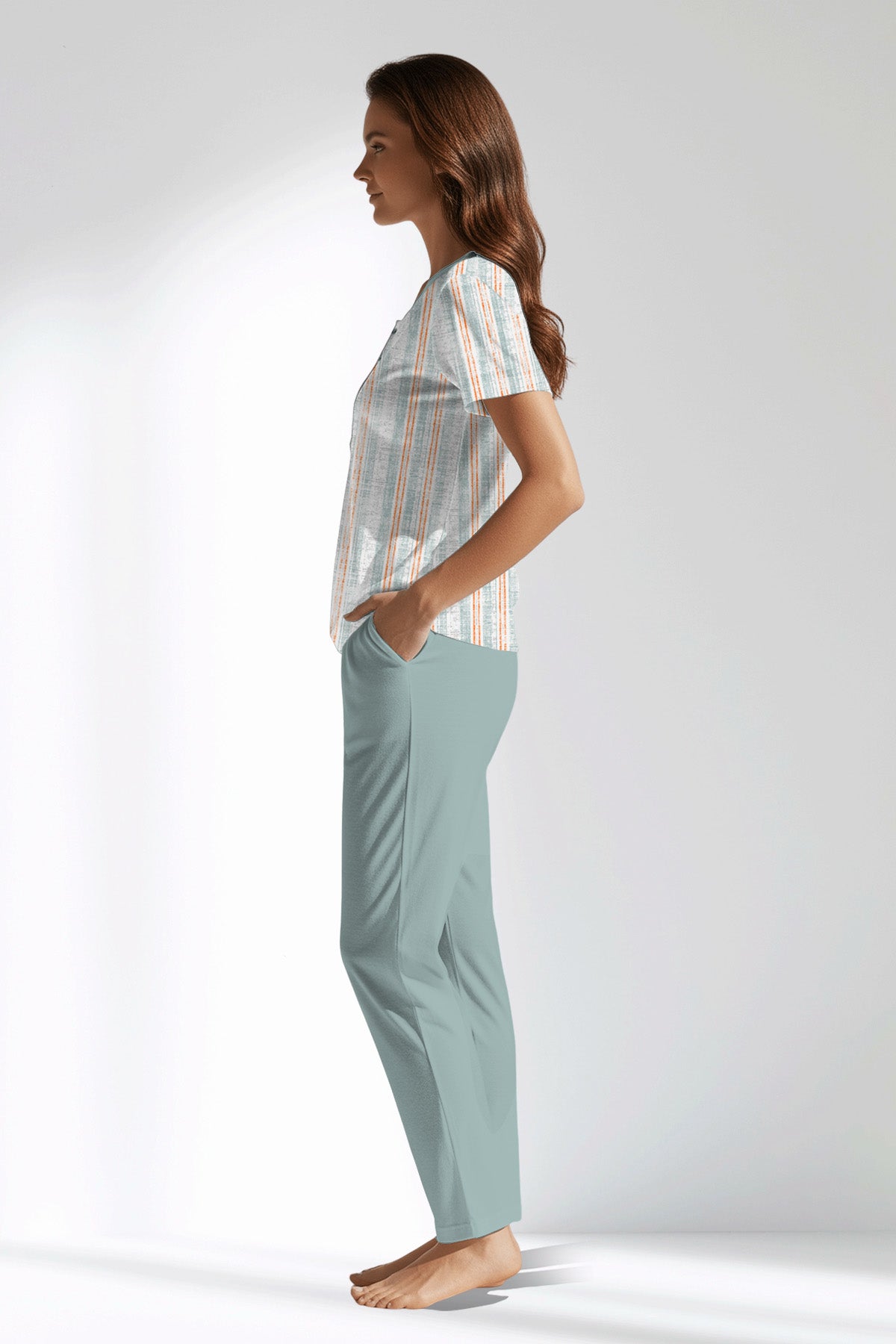 Woman Polyviscon Liner Buttoned Collar Short Sleeve Pyjama Set
