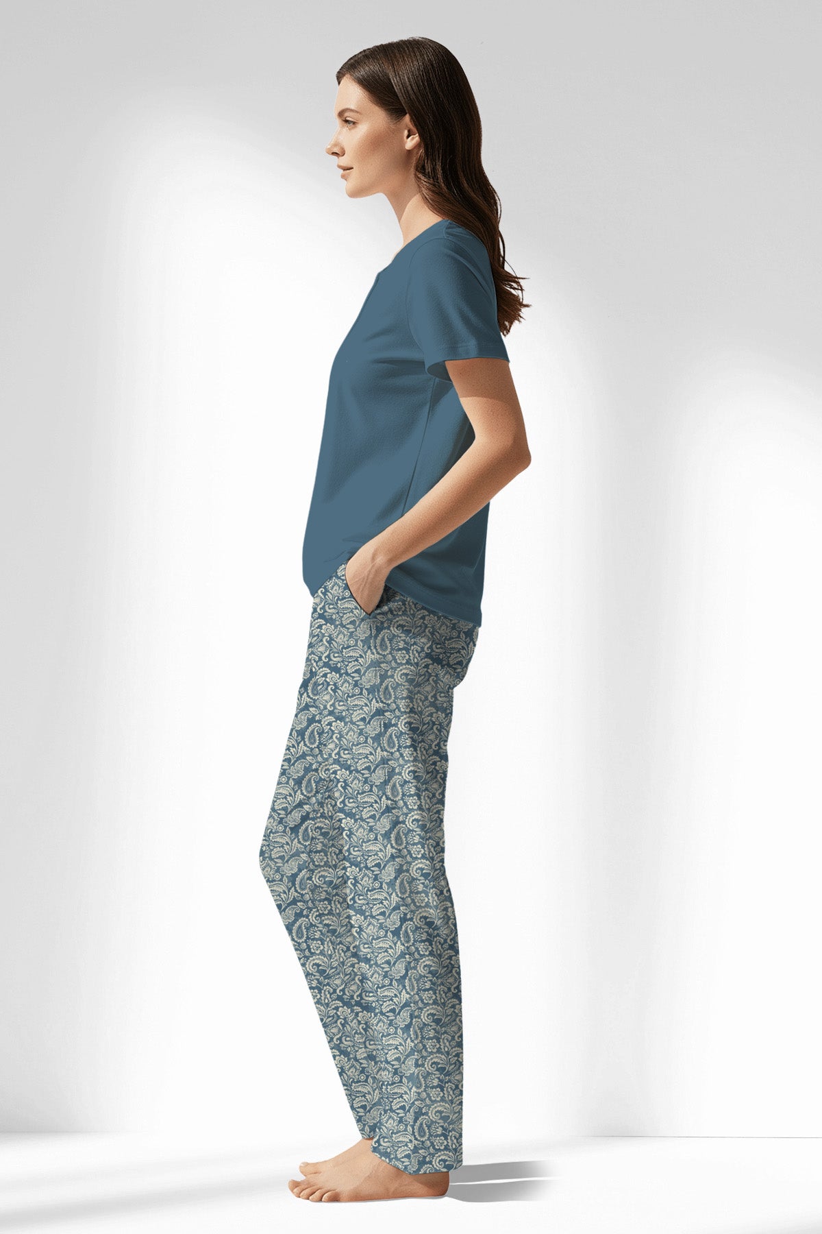 Woman Polyviscon Noble Drop Collar Short Sleeve Pyjama Set