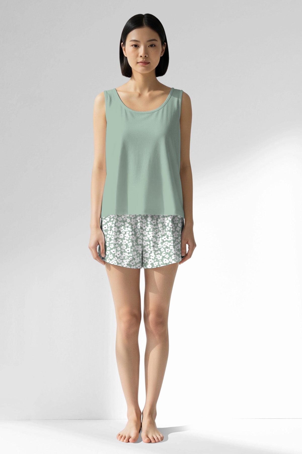 Woman Polyviscon Vanilla Thick Strap Sleeveless Short Set